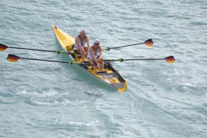 Die DRV-Verantwortlichen vor Ort, Hendrik Bohnekamp und Adrian Bretting, zogen ein positives Gesamtfazit. „Wir wussten, dass wir besser vorbereitet waren als in den vergangenen Jahren. Dennoch waren wir nach dem Bekanntwerden des Meldeergebnisses eher zurückhaltend mit Prognosen. Bei Meldefeldern von 40 Booten und mehr, ist der Sprung unter die Top 16 schon eine Herausforderung. Dass uns dies mit allen neun gemeldeten Booten gelang, war schon eine ganz starke Mannschaftsleistung. Dass dann auch noch sechs Boote, darunter alle vier Einer (Junior:innen und Elite) sogar den Sprung unter die Top 8 schaffen, war mein persönliches Highlight. Ich bin sehr stolz auf das gesamte Team. Auf dem Wasser und an Land,“ so Hendrik Bohnekamp. Adrian Bretting ergänzte: „Wir haben hier als deutsche Nationalmannschaft eine starke Performance abgeliefert. Nicht nur die Athlet:innen im Strandsprint oder beim Rudern. Insbesondere auch das Team drumherum beim Präparieren der Boote und dem Handling in der Brandung. Das hat richtig Spaß gemacht und beflügelt. Im Beach Sprint entscheiden oft Nuancen übers Weiterkommen. Auch kleinste Fehler werden schnell bestraft. Hinzu kommt der Modus. "Do or die". Ab der KO-Runde gibt es keine zweite Chance. Die Medaillen gehen an ganz viele Nationen. Das muss man bei der Betrachtung der Ergebnisse berücksichtigen. Eine Top 16 oder Top 8 Platzierung stellt keine Niederlage dar. Im Gegenteil!“