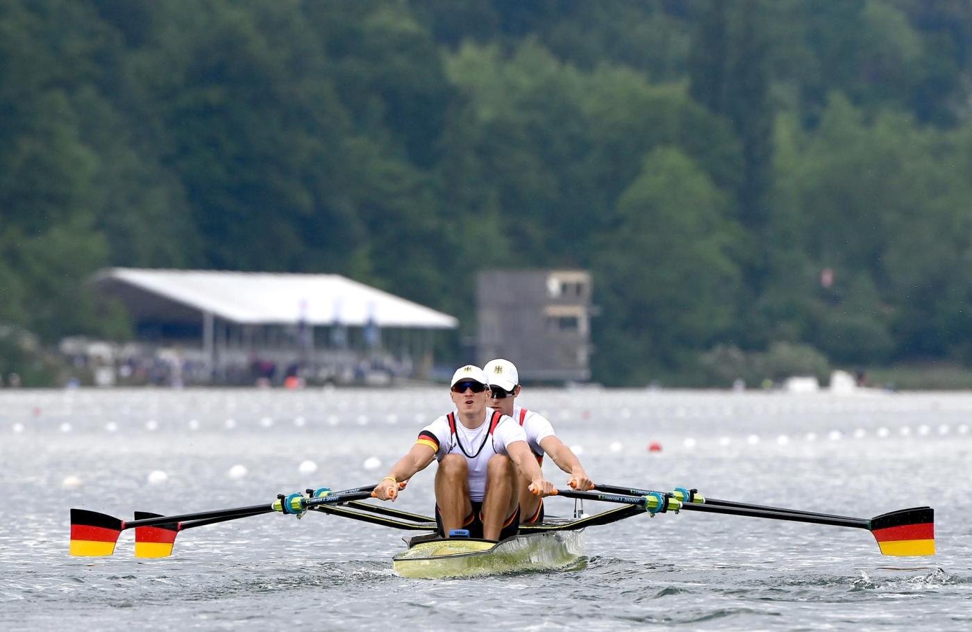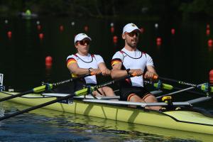 Geht es nach den beiden Vorläufen im leichten Doppelzweier der Männer, sind Deutschland, Frankreich und Griechenland die Top-Anwärter auf die beiden offenen Startplätze bei den Olympischen Spielen. Das deutsche Boot mit Paul Leerkamp und Jonathan Rommelmann (Osnabrücker RV, Crefelder RC) war in seinem Vorlauf klar das Stärkste und landete einen Start-Ziel-Sieg. Auf den letzten Metern konnten die beiden relativ entspannt wahrnehmen, dass hinter ihnen noch ein großer Kampf um den zweiten direkten Platz im Finale entbrannte, den Polen gegen Österreich für sich entschied. „Wir sind gut rausgekommen und waren bei 1000 Metern genau da, wo wir sein sollten. Wir haben dann versucht, einen Gang hochzuschalten, uns aber ein bisschen auseinandergearbeitet“, berichtete Paul Leerkamp. „Das wird die Aufgabe für das Finale sein, die dritten 500 gut zu treffen und dann den Endspurt gemeinsam hochzuziehen.“ Im ersten Vorlauf hatten sich Frankreich mit den Ex-Europameistern Beurey/Ludwig und der Doppelzweier aus Griechenland sicher durchgesetzt.