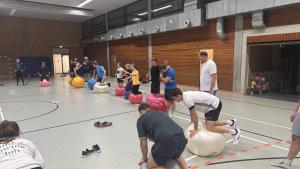 Im Anschluss an diesen, doch sehr theoretischen Teil, folgte etwas Bewegung. Von Hendrik Bohnekamp gab es Tipps und Tricks zum Rumpf-Stabilisations-Training und Kräftigung. Mitmachen dringend erwünscht.