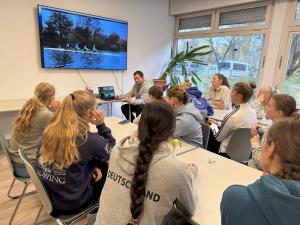 Der Fokus lag vor allem auf dem Großboottraining, aber auch "Stabi", Kraft und Mobilisation sowie Sportspiele standen auf der Tagesordnung. „Wir haben knapp 100 Kilometer im Doppelvierer zurückgelegt und diese dann auch per Video analysiert“, erklärt Bretting, der vor Ort von insgesamt vier weiteren Trainern unterstützt wurde. U23-Bundestrainer Marcus Schwarzrock stattete dem Nachwuchs, gemeinsam mit seinen Bereichsverantwortlichen für die Skull-Disziplinen: Eric Johannesen und Alexander Schmidt, einen Besuch ab und gab schon einmal einen Ausblick auf den U23-Bereich.