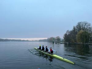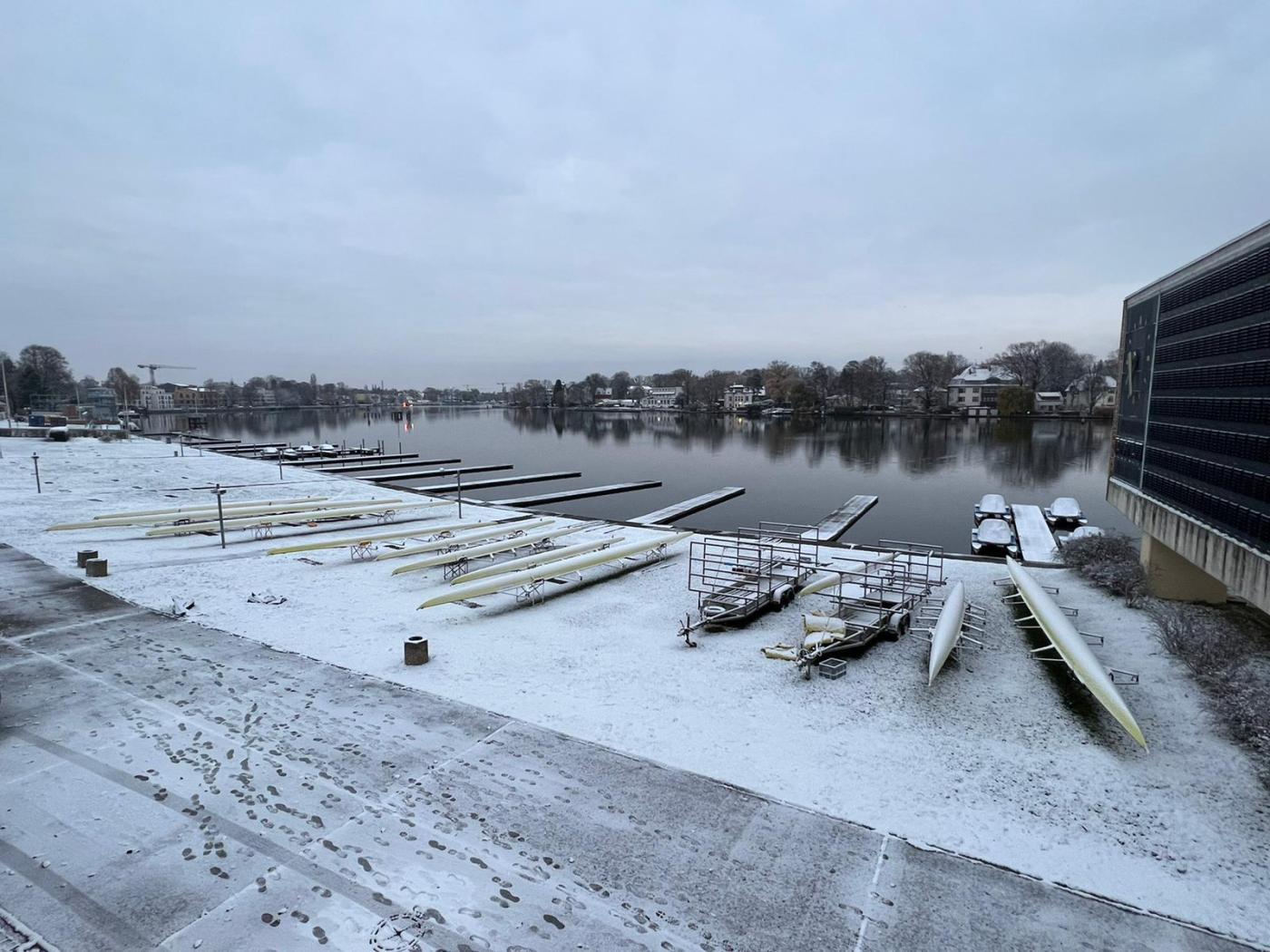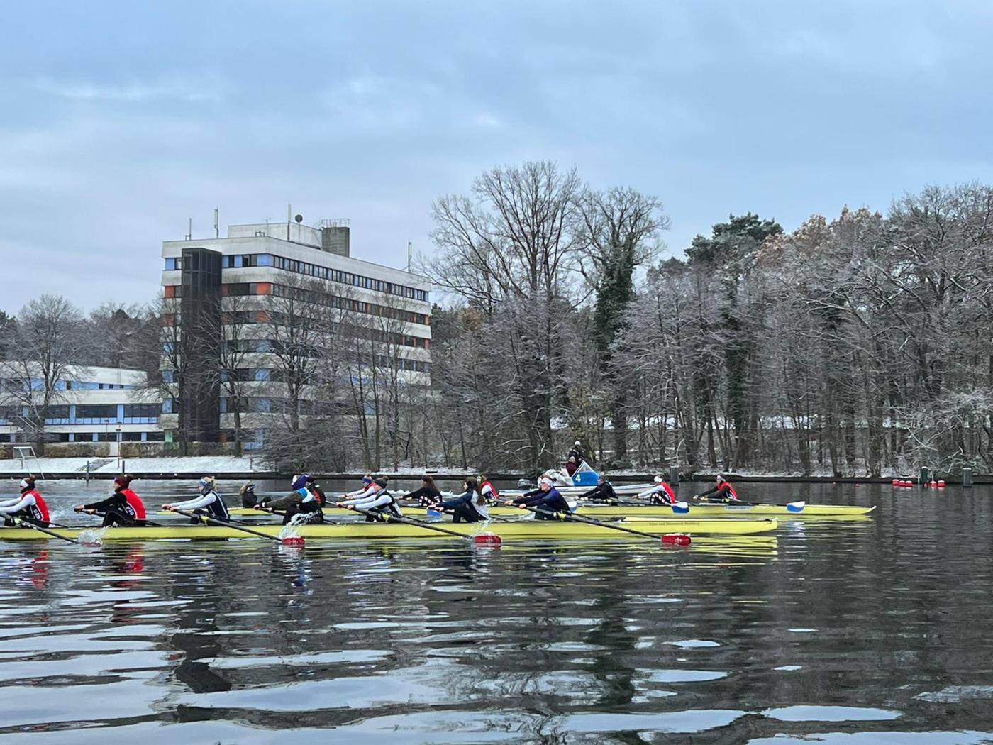 Rund 60 Nachwuchssportler:innen aus dem nationalen Skull- und Riemenbereich (Regionalgruppe Nord-Ost) waren am vergangenen Wochenende der Einladung von Junioren-Bundestrainer Adrian Bretting und Regionaltrainer Nils Meyer nach Berlin-Grünau gefolgt. Während bei den Riemer:innen die Leistung bei der Herbst-Langstrecke vor knapp einer Woche entscheidend für die Trainingseinladung war, wurden die Skuller:innen anhand der Saisonleistung der letzten Monate nominiert. Auch wenn die Bedingungen mit dem überraschenden Wintereinbruch anders als geplant waren, konnte das komplette Programm durchgezogen werden. „Es war zwar sehr kalt, aber alle haben dem Schnee getrotzt und sehr gut mitgemacht“, so Bretting.