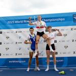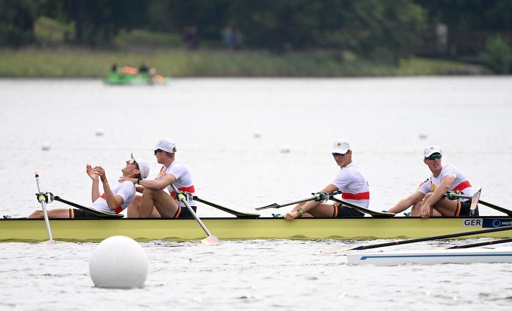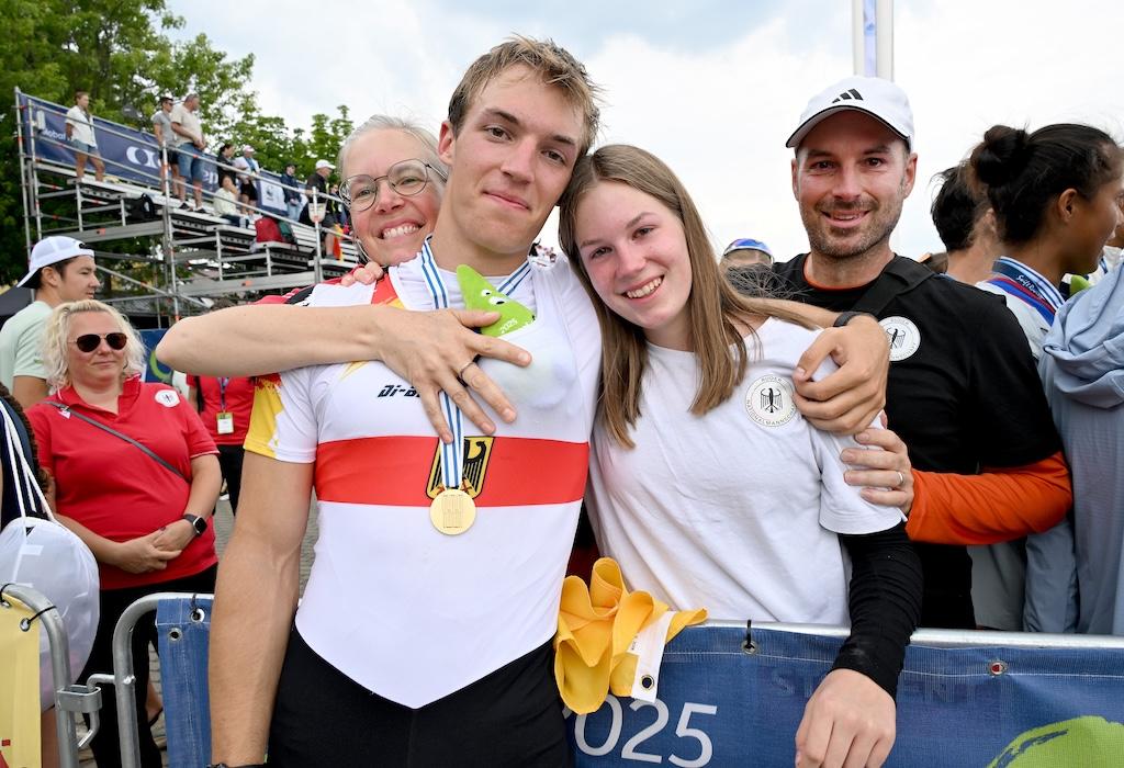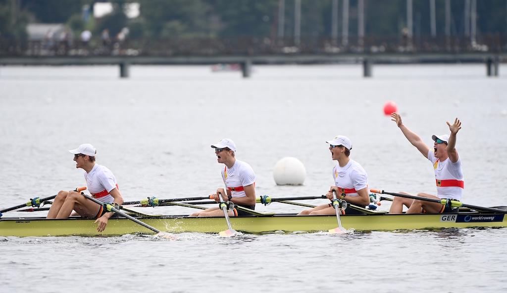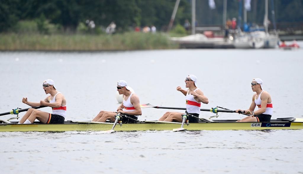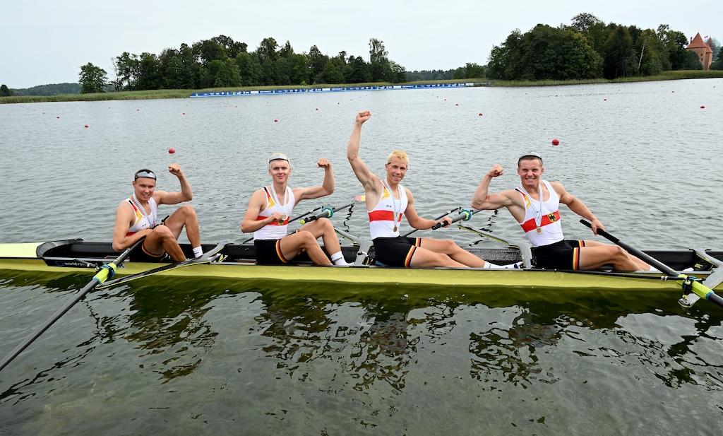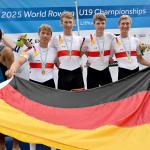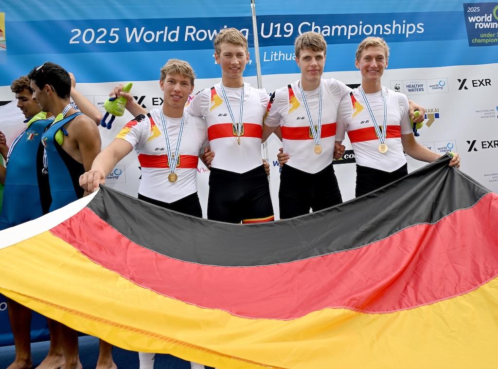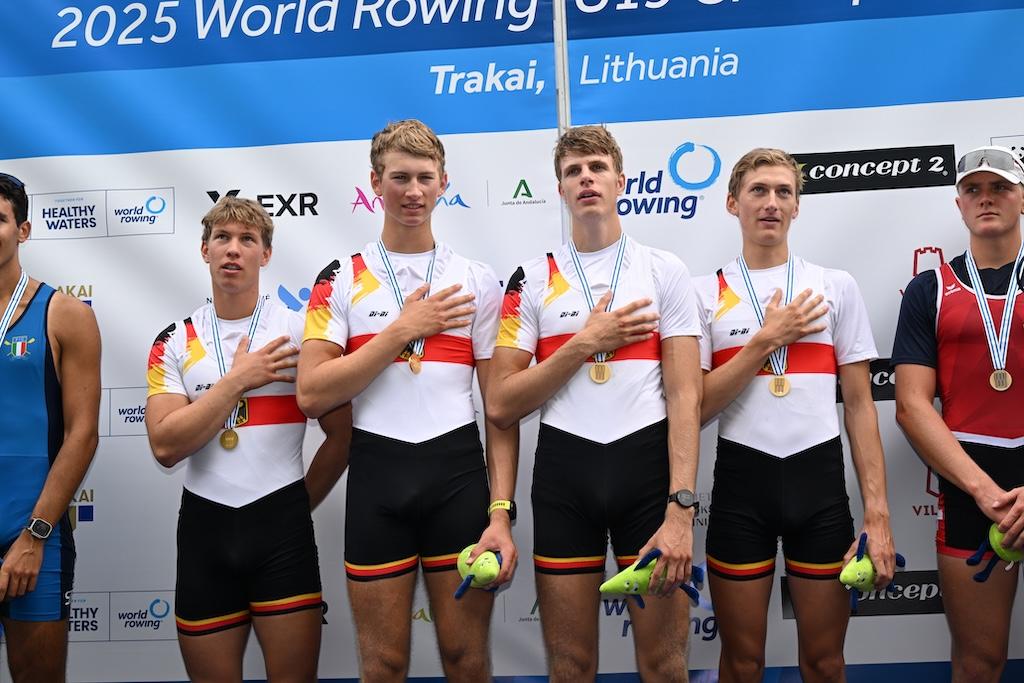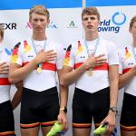 Ebenfalls in Gold strahlte der Junioren-Doppelvierer mit Miklas Scheer (Erster Kieler RC), Oskar Müller (RV Wandsbek), Eric Mengebier (HRV Böllberg/Nelson) und Florian Schulze (Hildesheimer RC). In einem Feld mit den Topnationen Italien, Schweiz und Polen übernahm das Quartett ab der 1000-Meter-Marke die Spitze und verteidigte sie souverän – der dritte WM-Titel in Folge für Deutschland in dieser Bootsklasse.