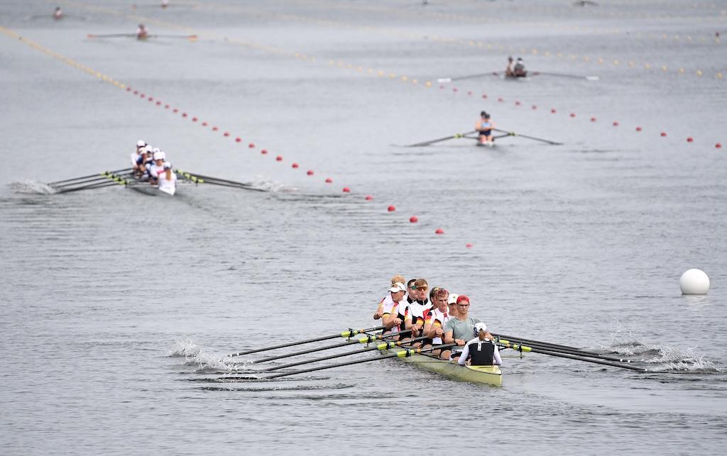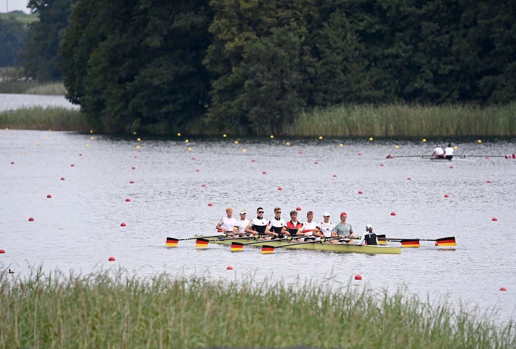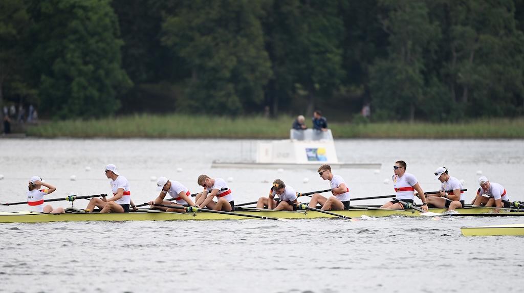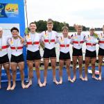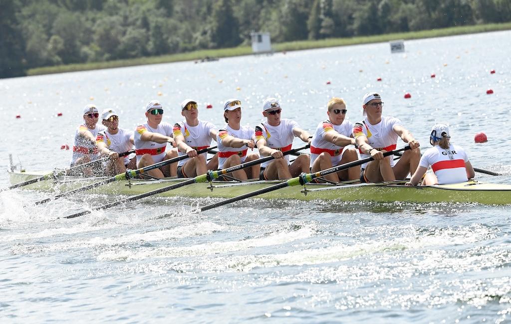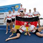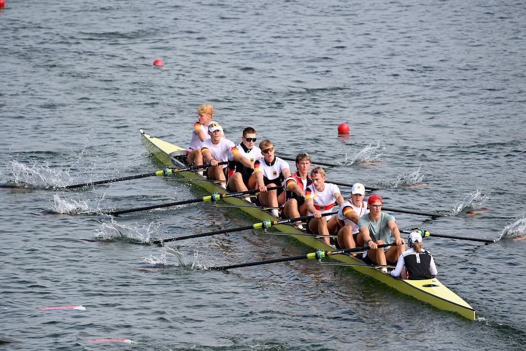 Den Abschluss machte der Junioren-Achter (Konstantin Wetzler, Georg Rieck, Julius Watzka, Jakob Bergmann, Alex Ian Aderhold, Moritz Bitz, Felix Zeymer, Maximilian Gillmann, Stf.: Ella Loetsch), der nach verhaltenem Start im zweiten Streckenabschnitt die Medaillenränge eroberte und Bronze nach Deutschland holte.