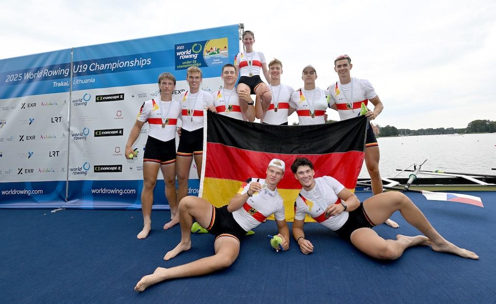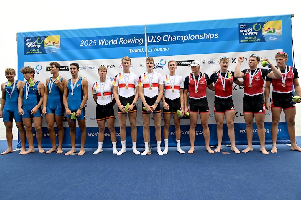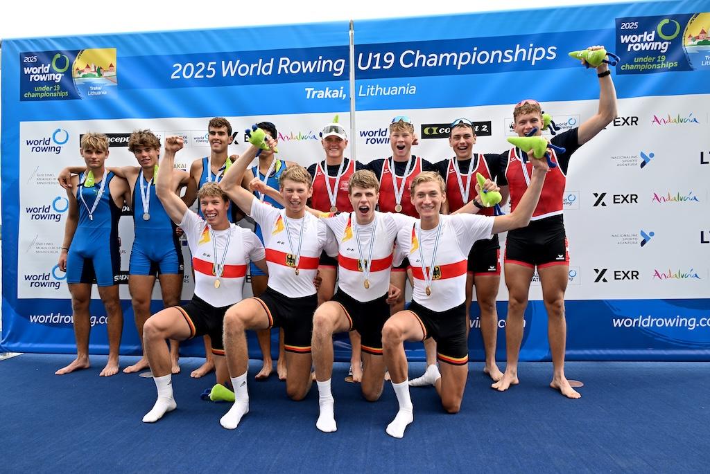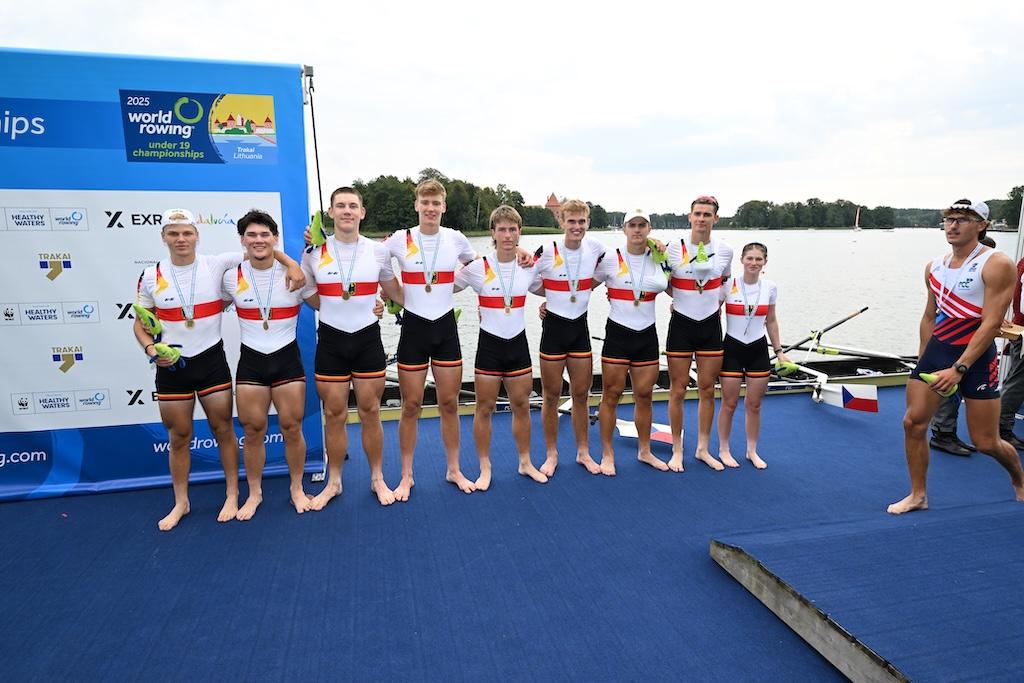 Die U19-Weltmeisterschaften 2025 in Trakai (Litauen) boten alles, was Nachwuchsleistungssport ausmacht: packende Finals, knappe Entscheidungen, Überraschungen und große Emotionen. Der Deutsche Ruderverband stellte mit zehn A-Final-Teilnahmen nicht nur das größte Aufgebot im Medaillenkampf, sondern bewies mit zweimal Gold und viermal Bronze auch seine starke Rolle im internationalen Juniorenrudern. Mit Platz drei in der Nationenwertung hinter Großbritannien (4/2/1) und Griechenland (2/1/1) wird die Weltmeisterschaft der U19 beendet.