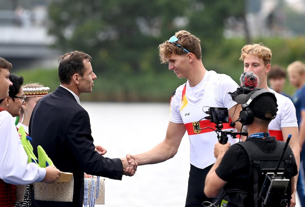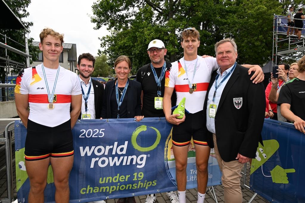 DRV-Junioren-Bundestrainer Paul Zander zeigte sich zufrieden: „Wir haben hier in Trakai eine extrem starke internationale Konkurrenz erlebt. Umso mehr freut es mich, dass wir mit zwei Goldmedaillen im Junioren-Skullbereich nach Hause fahren – mit einem herausragenden Einer-Weltmeister Mads Schmied und einem Doppelvierer, der die deutsche Erfolgsserie fortgesetzt und das Triple gewonnen hat. Mein Dank gilt vor allem den Vereinen sowie den Heimtrainerinnen und -trainern, die durch ihre kontinuierliche und hervorragende Nachwuchsarbeit diese Erfolge möglich machen. Dann möchte ich mich beim kompletten Team an dieser Stelle bedanken. Ohne euch alle wäre diese WM nicht so ein Erfolg geworden.“
