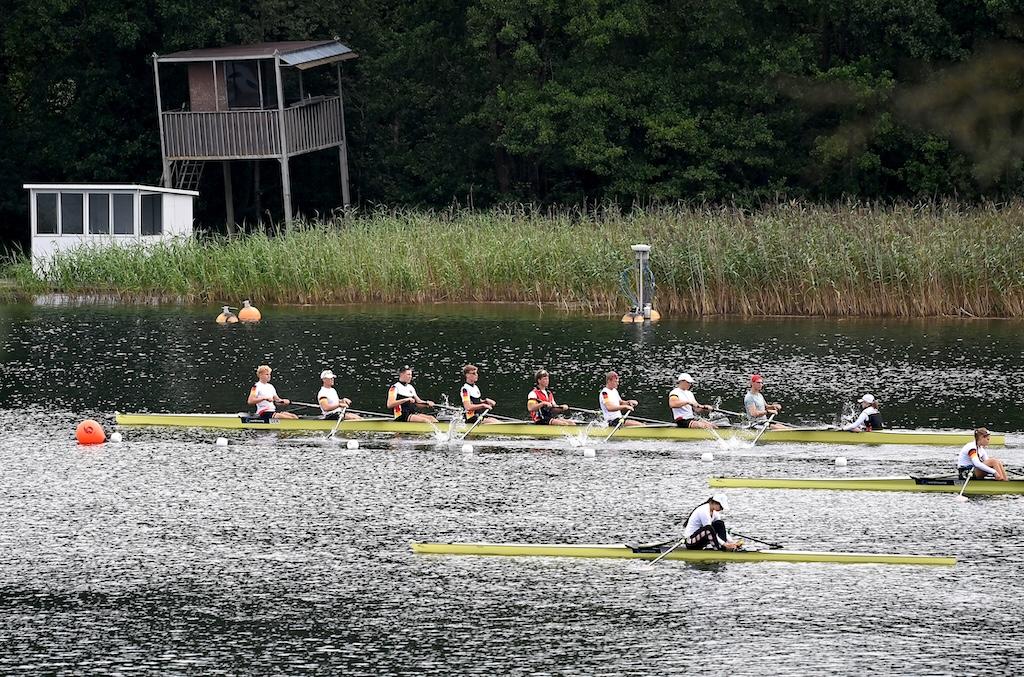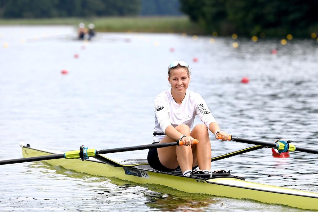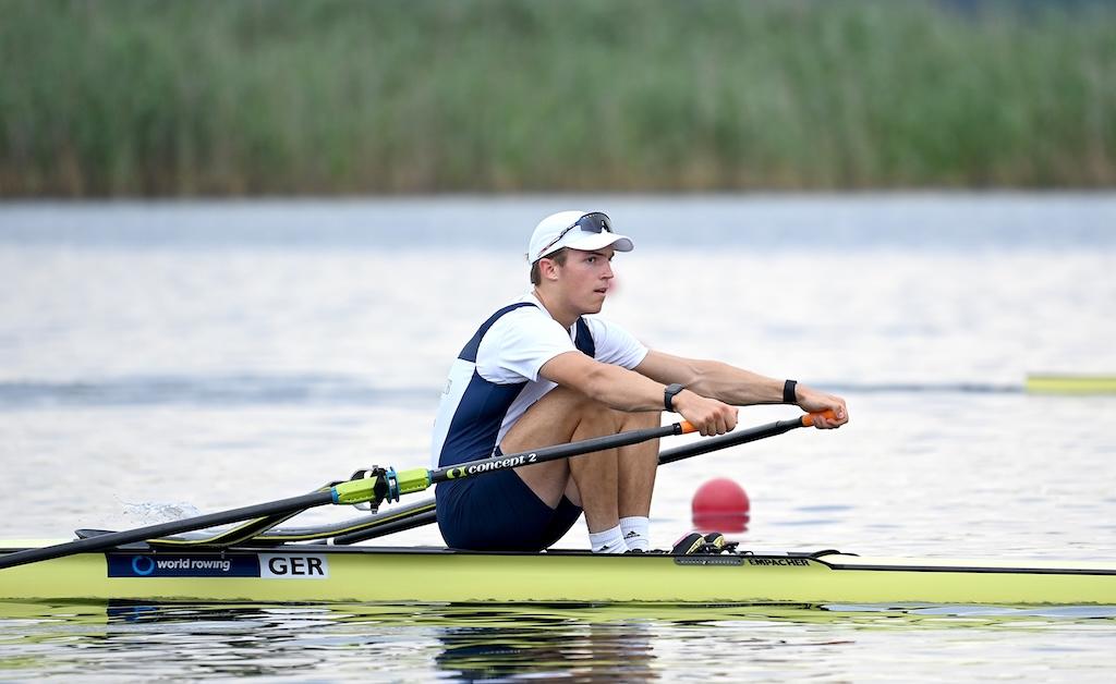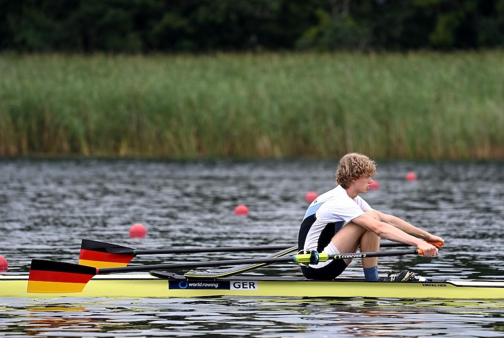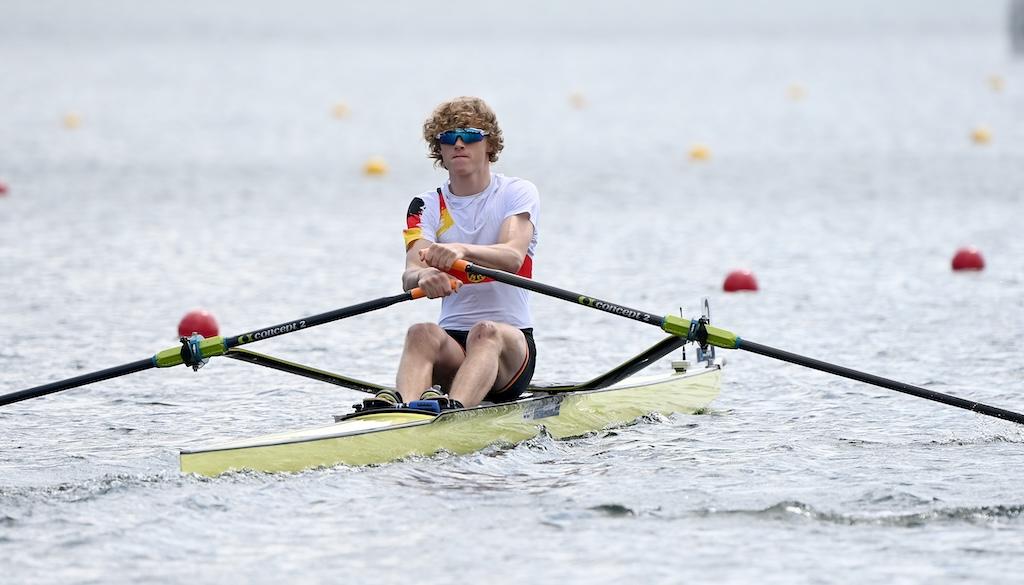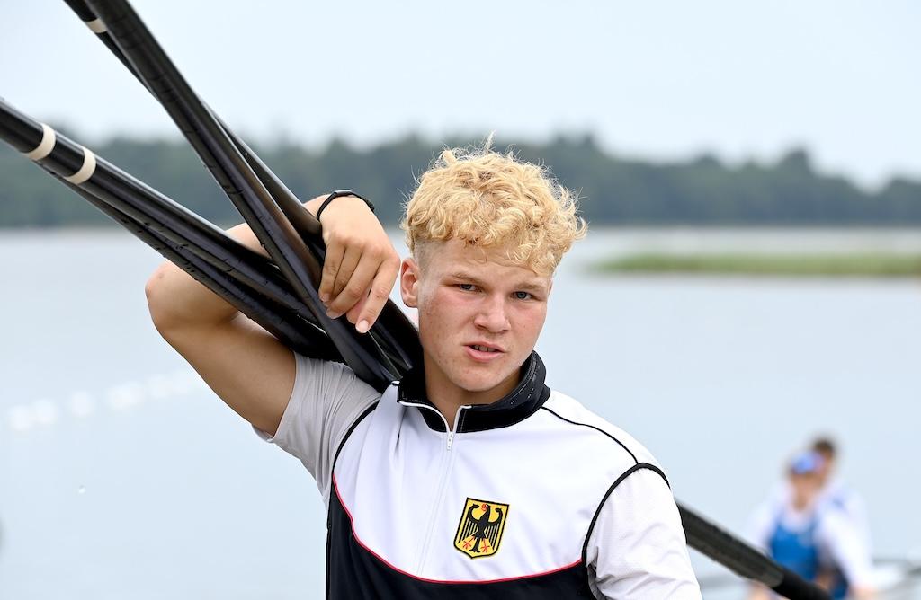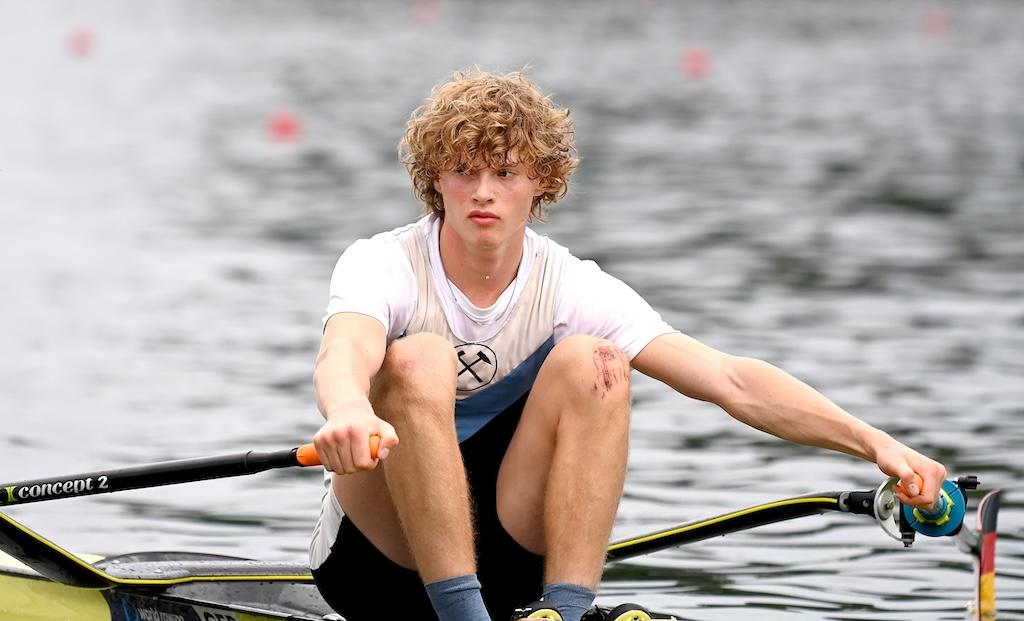 Eine herausragende Leistung lieferte Mads Schmied (RC Potsdam) im Junioren-Einer. Schon im Halbfinale hatte er seine Klasse angedeutet, im Finale setzte er noch eins drauf: Start-Ziel-Sieg, jederzeit souverän kontrolliert – und am Ende ein Vorsprung von fast sechs Sekunden auf Silber. Eine Demonstration von Rennintelligenz und physischer Stärke.