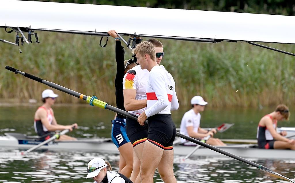 Nicht jede Medaille passte ins Gepäck, doch auch Platzierungen neben dem Podium hatten Gewicht. Der Junioren-Zweier ohne mit Leander Reinelt und Ensio Flöter (beide Frankfurter RG Germania 1869 e.V.) belegte Rang vier, nachdem er lange im Medaillenrennen war. In diesem hochklassigen Feld zeigte das deutsche Duo sein Potenzial – hervorragend eingestellt von Trainer Yannick Burg.