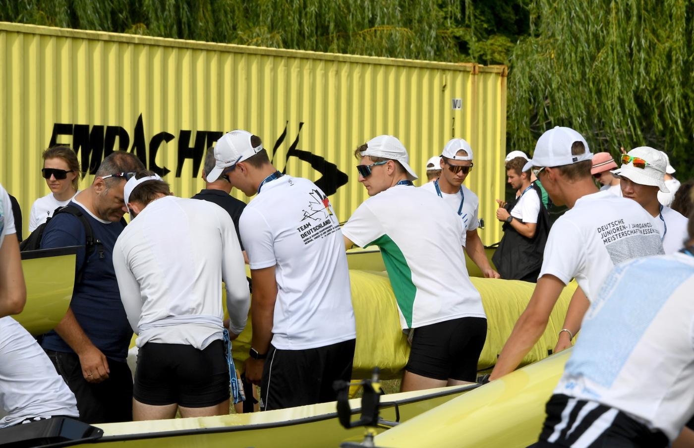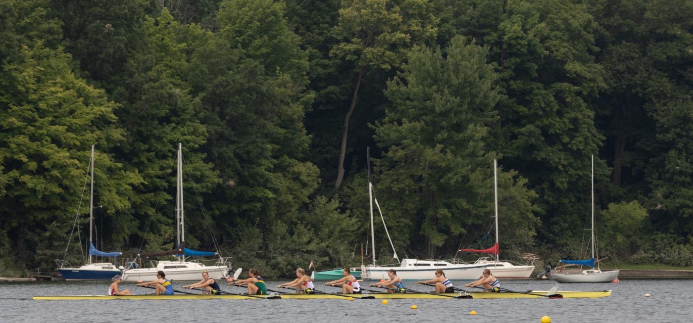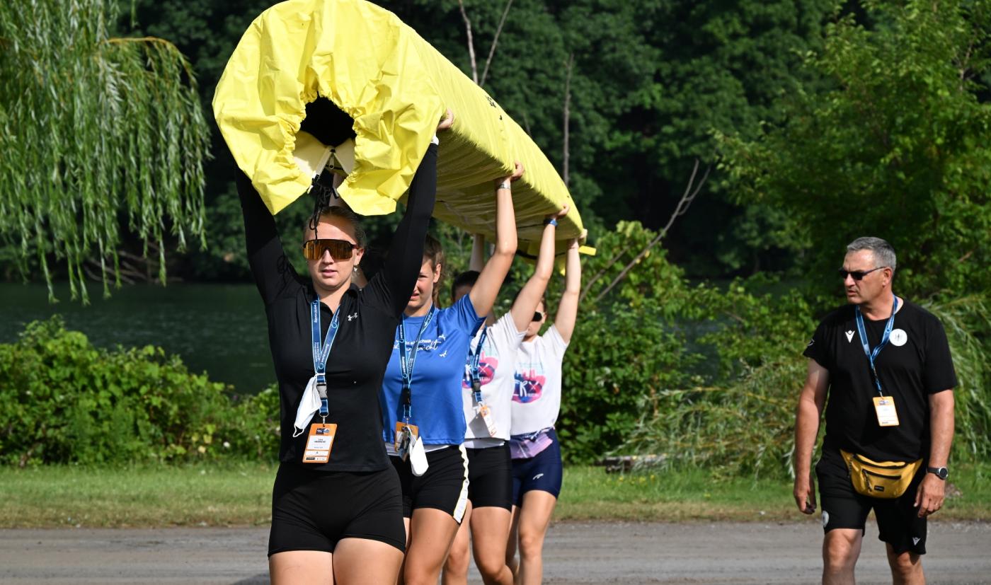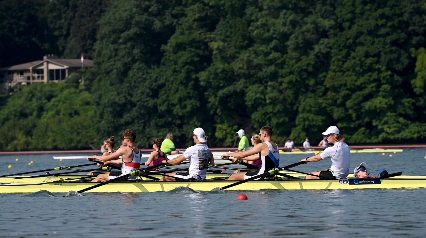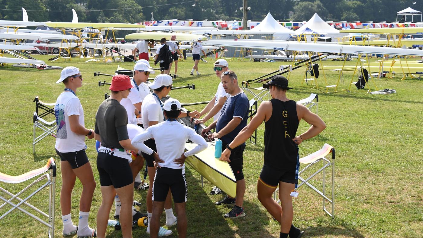 Das Jahr 2024 steht für die U19-Nationalmannschaft ganz im Zeichen des „Maple Leaf“ – dem kanadischen Nationalsymbol. Nicht nur aufgrund des Austragungsortes zu den U19-Weltmeisterschaften in St. Catharines. In diesem Jahr fand auch die unmittelbare Wettkampfvorbereitung (UWV) der deutschen Junior:innen in Kanada statt. Genauer im circa 180km von St. Catharines entfernten London (Ontario). Seit dem 29. Juli wurde die University of Western Ontario (UWO) und das Ruderrevier der „Western Mustangs“-Rudermannschaft auf dem Fanshawe Lake zum Interims-Zuhause für die rund 66 Personen umfassende Mannschaft. „Aufgrund von Bauarbeiten stand uns in diesem Jahr unsere angestammte Trainingsstätte in Berlin-Grünau nicht zur Verfügung. Alternative Trainingsorte in Deutschland und Europa waren ebenfalls bereits im Frühjahr 2023 ausgebucht bzw. zu teuer. So entschieden wir uns nach einer Alternative in der Nähe des Austragungsortes zu suchen, da unser Bootsmaterial ja sowieso dorthin muss und auch die Flüge für die WM angefallen wären", erklärt U19-Bundestrainer Adrian Bretting die Wahl des Ortes der UWV für die U19-Ruder:innen. Dem voraus ging eine Planungszeit von knapp 1,5 Jahren. „Eine fast schon beiläufig spontane Idee nahm im Laufe der Zeit immer realistischere Formen und Züge an. Das war ein spannender Prozess bei dem viele engagierte und hilfsbereite Menschen beteiligt waren,“ beschreibt Bretting die Planungszeit zur diesjährigen U19-UWV.