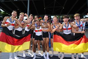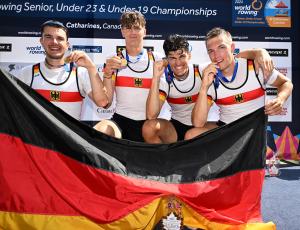 Die U19-Weltmeisterschaften in St. Catharines endeten am gestrigen Finaltag mit einer beeindruckenden Bilanz: Das deutsche Team sicherte sich insgesamt sieben Medaillen und gewinnt damit die Nationenwertung. „Ich bin wirklich absolut happy mit der Mannschaft. Echt super,“ zieht Bundestrainer Adrian Bretting ein begeistertes Fazit. „Was wir gestern gezeigt haben, war in allen Rennen das realistisch bestmögliche Ergebnis. Alle Boote sind ihre Rennen engagiert angegangen und haben die Ergebnisse erzielt, die wir uns erhofft hatten.“