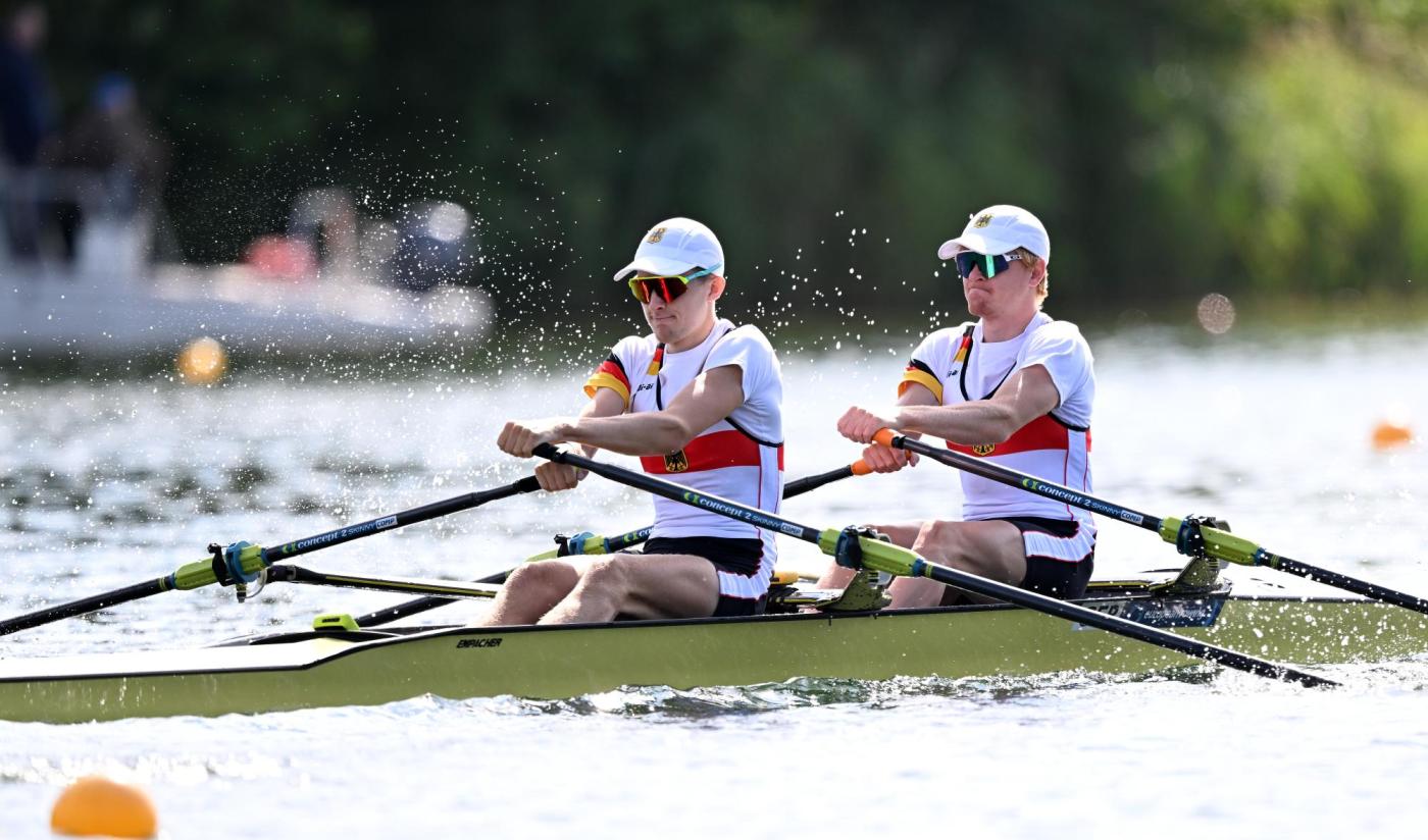 Nach dem starken Auftritt im Vorrennen gehörten Adrian Reinstädtler und Moritz Küpper (Frankfurter RG 'Germania' 1869 e.V / RC "Westfalen" Herdecke 1929 e.V.) im LG-Doppelzweier zum Favoritenkreis im Kampf um Gold. Dieser Rolle wurde das Team in eindrucksvoller Weise gerecht. Mit einem präzisen Spurt zur Streckenhälfte setzten sie sich vom Feld ab und bauten ihren Vorsprung bis in das Ziel auf mehr als drei Längen aus. Silber ging nach starkem Endspurt auf der Außenbahn an Ungarn, das Portugal noch abfangen konnte.