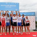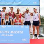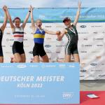 28,5 Grad am Nachmittag und nach anfänglichem leichten Seitenwind bei den letzten Entscheidungen spiegelglattes Wasser am Fühlinger See: Bei den deutschen Junioren- und Jahrgangsmeisterschaften, die seit Donnerstag (24. Juni 2022) in Köln stattfinden, wurden am Samstag bei guten Bedingungen die ersten Titel vergeben. In der U23 fielen bereits alle Entscheidungen. DRV-Präsident Moritz Petri und sein Stellvertreter Torsten Gorski blickten bei den Siegerehrungen überwiegend in besonders strahlende Gesichter. Eine Medaille oder gar ein Titel bei einer deutschen Meisterschaft, das zählt viel und setzte bei vielen Nachwuchs-Athleten große Emotionen frei.
