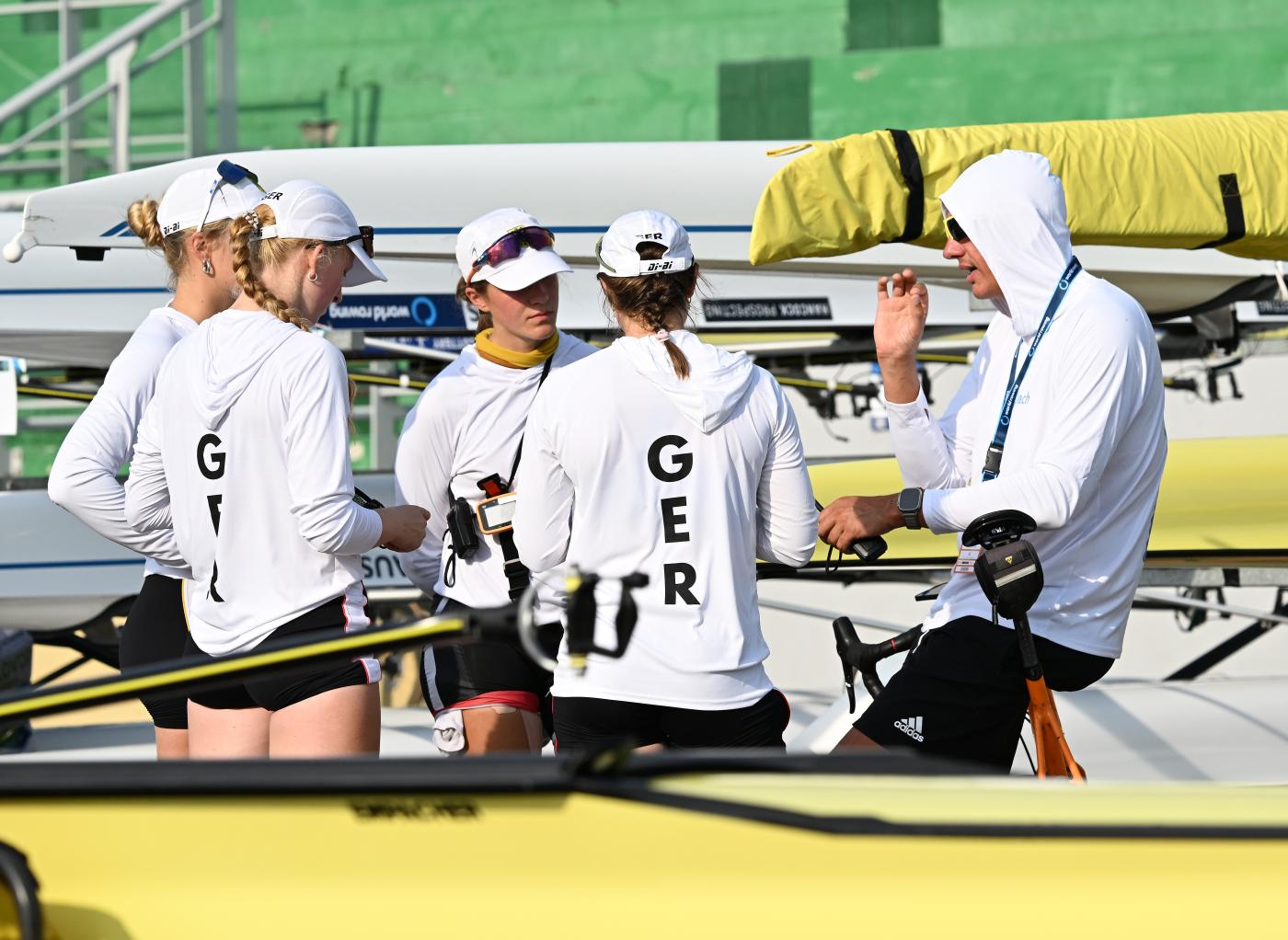 Einen sehr guten Eindruck hinterließen in den Relationsrennen diese drei Boote: der Männer-Achter mit Leon Gronbach, Sven Achterfeld, Paul Martin, Lino Zastrow, Johannes Benien, Noah Anger, Maximilian Pfautsch, Ole Bartenbach und Steuermann Sven Jagoda; der Männer-Doppelvierer mit Yannik Sens, Lukas Haaser, Paavo Tore Schewe und Jakob Geyer sowie der Frauen-Doppelzweier mit Johanna Debus und Charlotte Burgdorf. Nicht so stark, wie man es vielleicht erwartet hätte, traten die beiden Männer-Boote mit A-Bereich-Erfahrung auf, aber sie hatten auch schon einige schwere Regatten hinter sich. Über die gute Entwicklung des Frauen-Achters in Ratzeburg freute sich Dirk Brockmann besonders. Clara Reiter, Anni Kötitz, Lisa Behrens, Julia Irmler, Sara Grauer, Alina Krüger, Chiara Saccomando, Paula Becher und Steuerfrau Magdalena Hallay bilden das Boot. Die beiden Achter-Konkurrenzen sind mit 14 (Männer) bzw. zehn Nennungen (Frauen) außergewöhnlich zahlreich besetzt, sodass auch Semifinals ausgefahren werden.