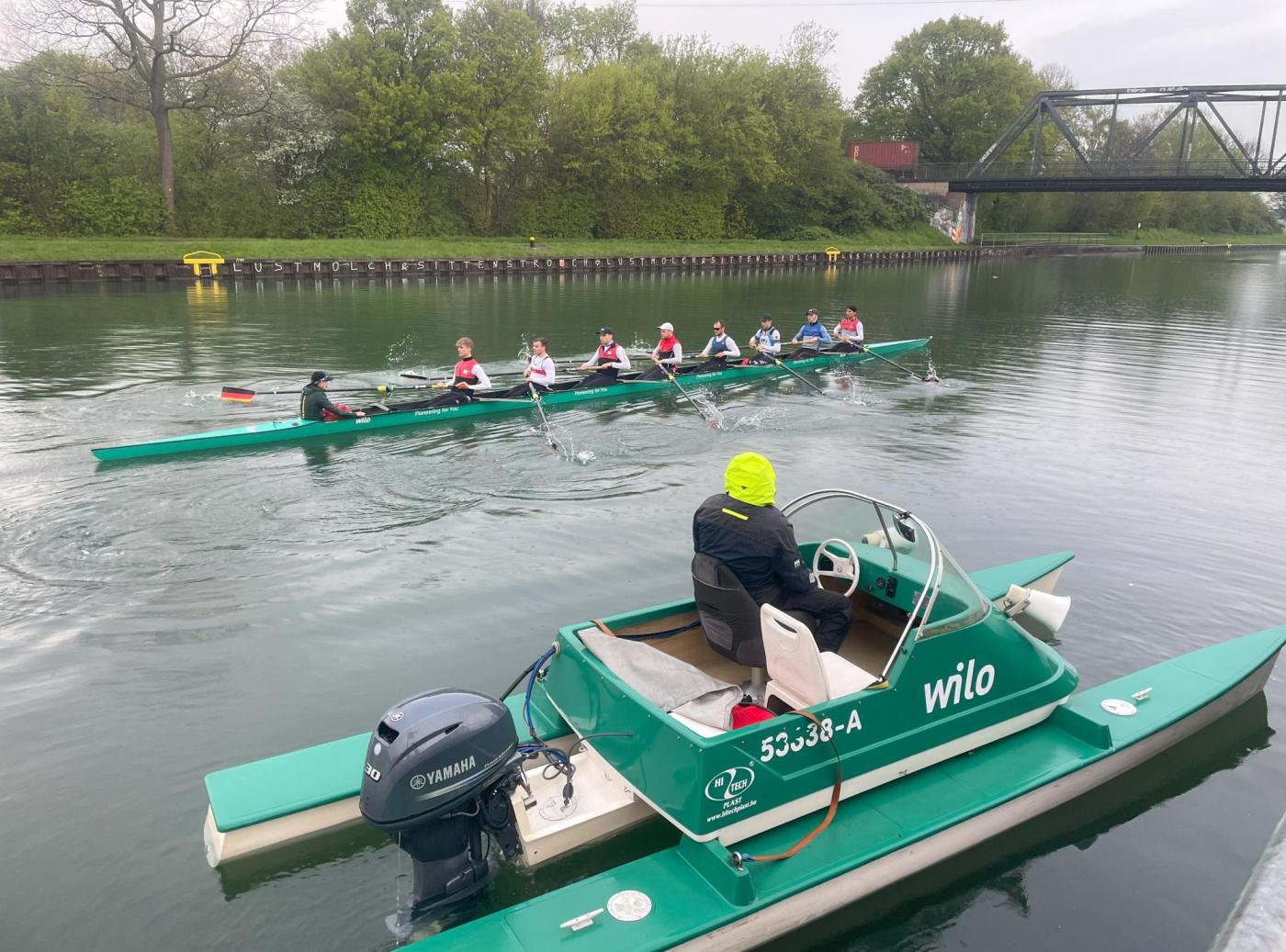 Am Bundesstützpunkt Dortmund hatte sich der Disziplinbereich U23-Männer-Riemen versammelt, um schwerpunktmäßig die Achter für die internationale Regatta in Duisburg vorzubereiten. Nach der langen Phase in den Kleinbooten konnte nun der Fokus wieder auf die Großbootdynamik gelegt werden. Friedrich Wilhelm Bücker, Alexander Weihe (beide U23-Stützpunkttrainer Dortmund) und Tim Grohmann (Bundesstützpunkttrainer BSP Dresden) haben insgesamt über 30 Sportler auf der Maßnahme betreut; 16 Ruderer und zwei Steuerleute aus dem U23-Bereich, ergänzt durch Ruderer der Dortmunder Trainingsgruppe. Trotz der teilweise durch Abiturklausuren verspäteten Anreise bei den Nachwuchsathleten, waren die Trainer sehr zufrieden. Es wurde sehr konzentriert gearbeitet und viele Erkenntnisse gewonnen. Man merkt, dass man jetzt mitten in der Wettkampfsaison angekommen ist und sich langsam leistungsstarke Mannschaftsboote herauskristallisieren. Auch Kräftigung und Gymnastik zwischen den Rudereinheiten mit U23-Physiotherapeutin Ann-Kathrin Sauer kamen nicht zu kurz. Ebenso wie die Skullerinnen haben die Riemer ein weiteres Wochenende zur Vorbereitung der Vierer ohne Steuermann genutzt.