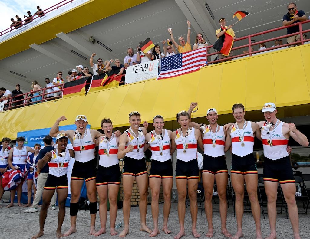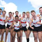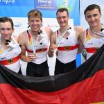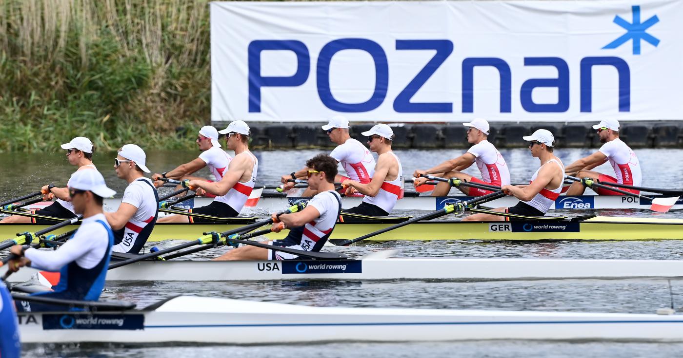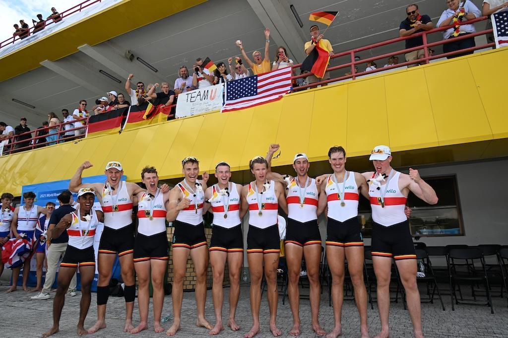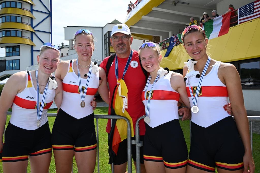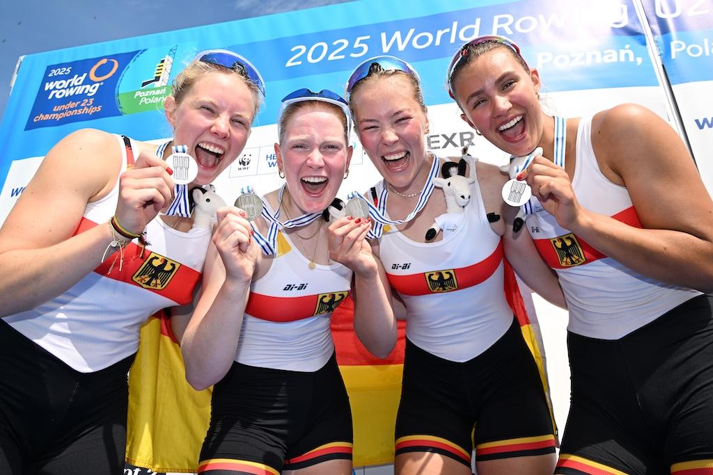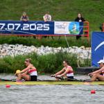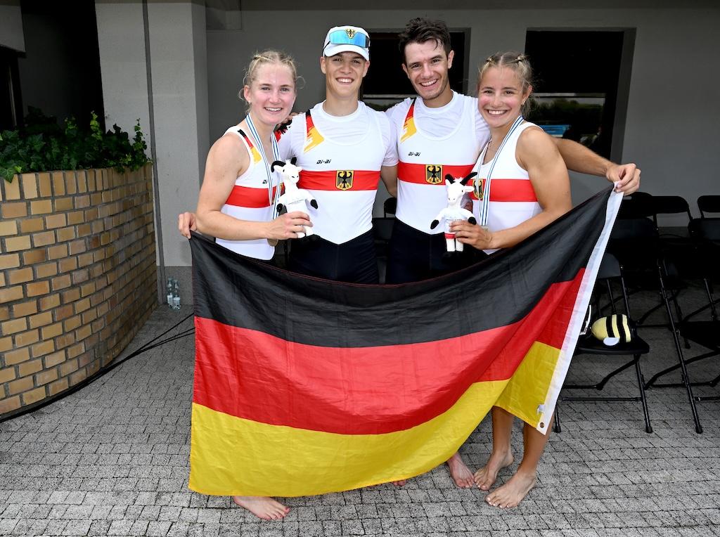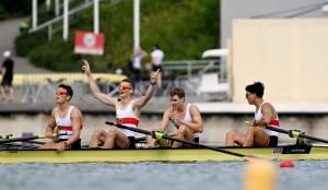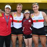 Keno Salzmann, Alvar Flöter, Lars Trampert und Maximilian Brill erreichten mit dem A-Finale im Riemen-Vierer schon mal ein großes Ziel. Im letzten Rennen des Freitags dominierten die USA und gewannen mit großem Vorsprung. Zwischen Rumänien und dem DRV-Boot gab es einen ausdauernden Zweikampf um Platz zwei, den die Rumänen am Ende für sich entschieden. Der dritte Rang für das deutsche Boot geriet auch durch Irlands finale Attacke nicht mehr in Gefahr. Die Freude war groß, nun wartet am Samstag (16:17 Uhr) das A-Finale.