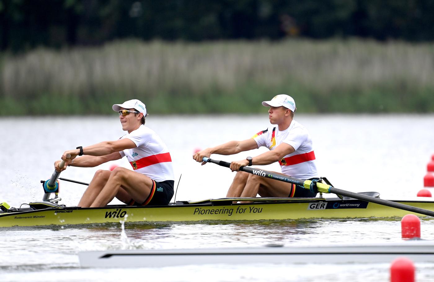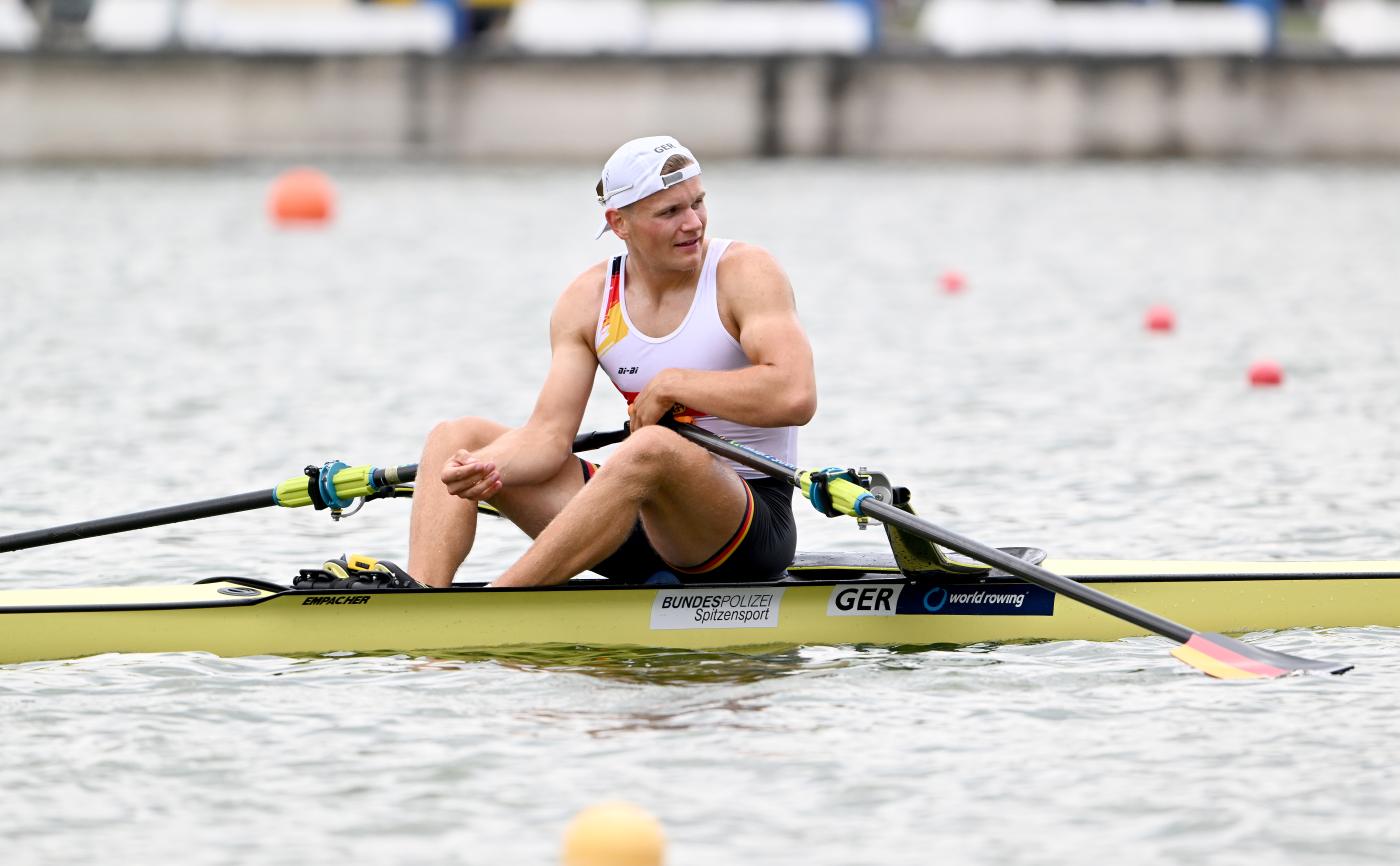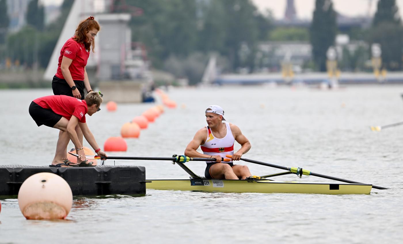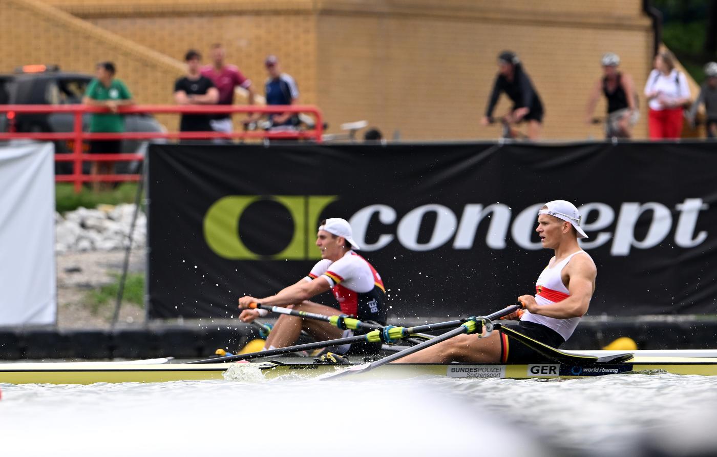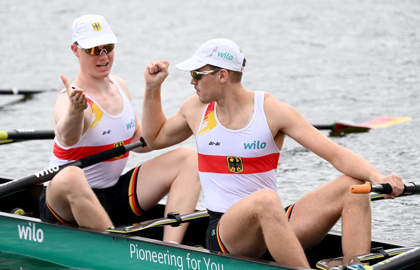 Im zweiten Halbfinale des Männer-Doppelzweiers hatte sich das Trio fürs A-Finale frühzeitig gefunden. Ole Hohensee und Timo Strache wechselten sich mit Portugal und Frankreich in der Führung ab. Am Ende gewannen die Franzosen das Rennen vor Portugal, das deutsche Boot verzichteten nach einem soliden Auftritt auf einen Schlusssprint und wurde Dritter. Im Kampf um die Medaillen am Samstag (15.49 Uhr) ist ein enges Rennen zu erwarten. „Ich denke, dass bei Ole und Timo noch eine Steigerung drin ist“, sagt Bundestrainer Brockmann.