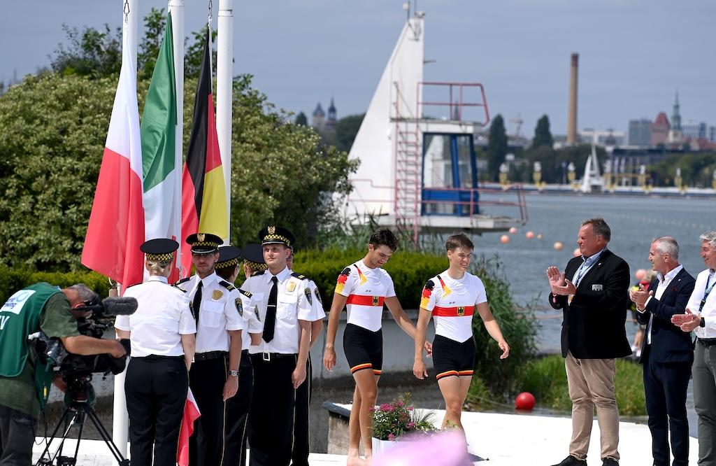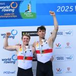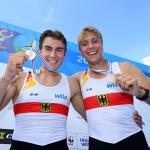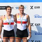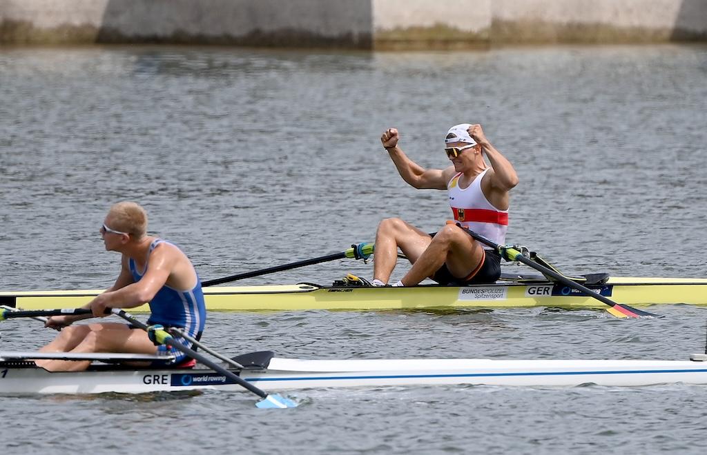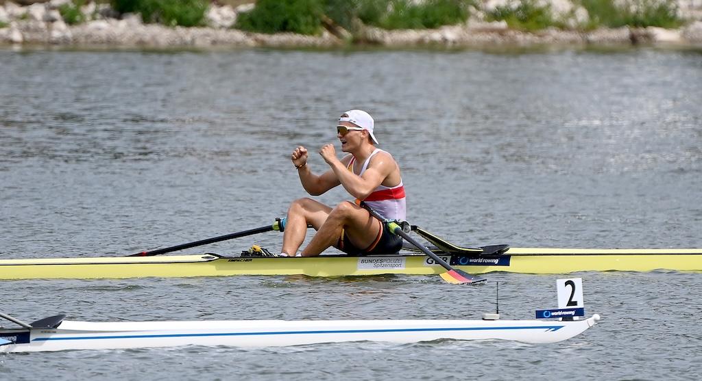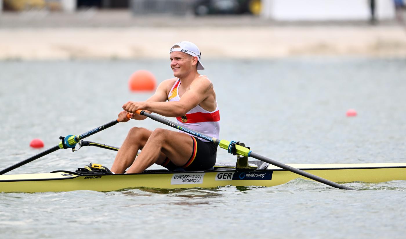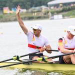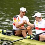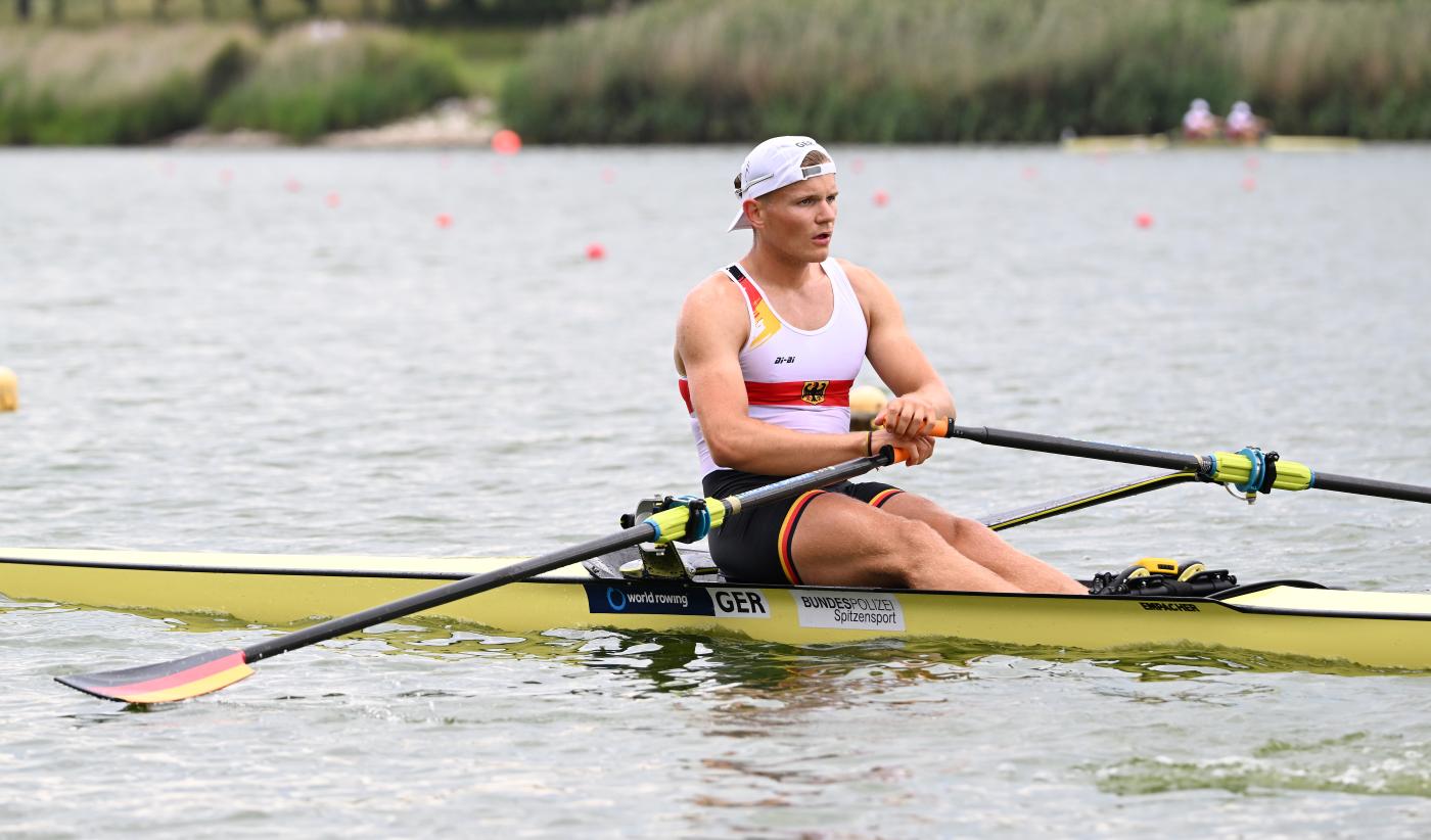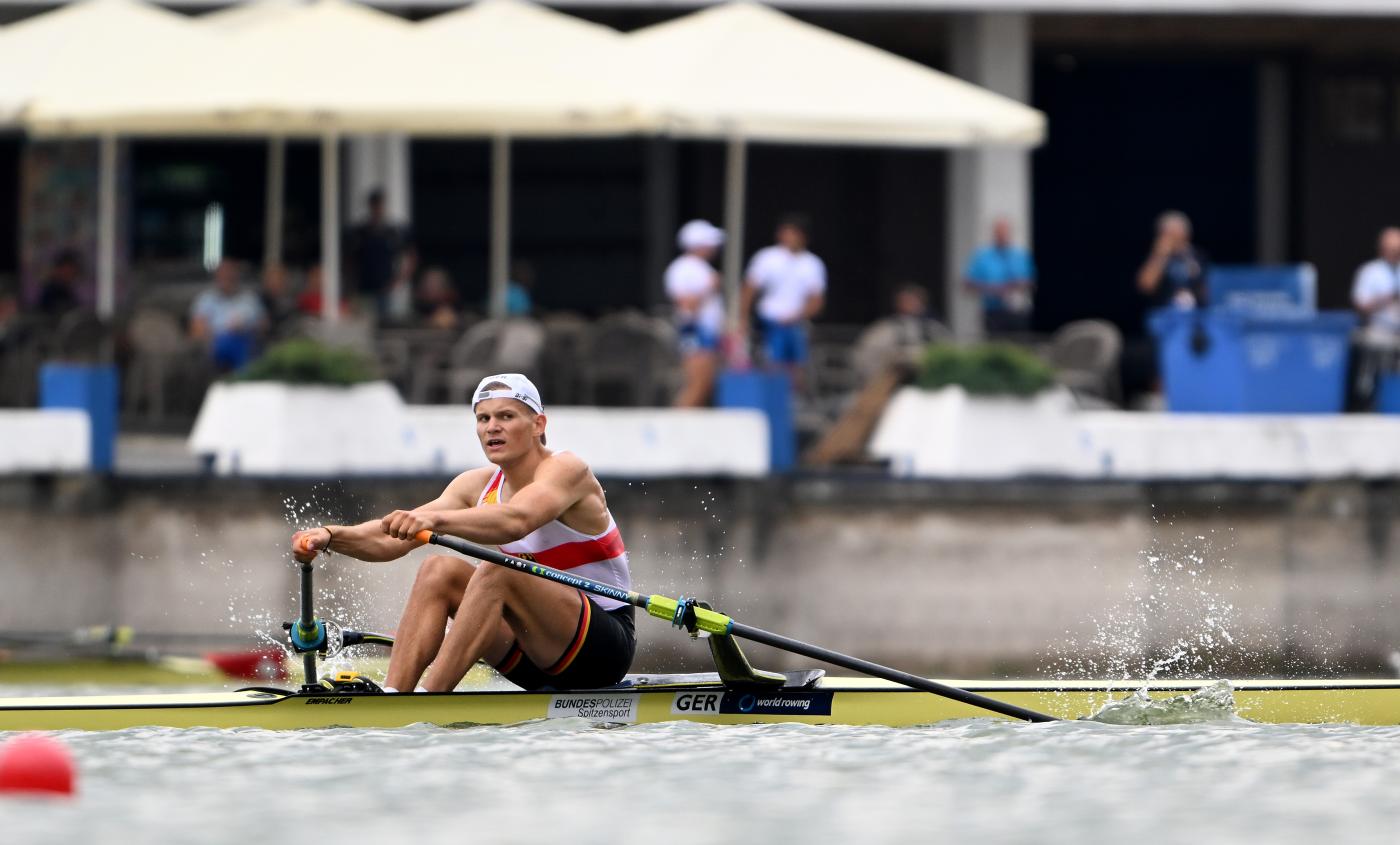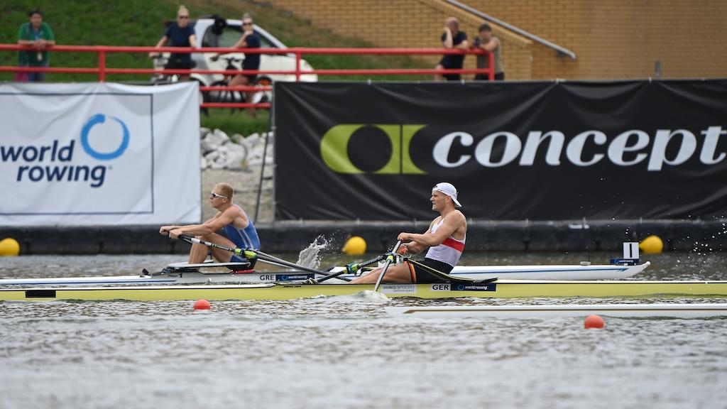 Im zweiten Halbfinale des Männer-Doppelzweiers hatte sich das Trio fürs A-Finale frühzeitig gefunden. Ole Hohensee und Timo Strache wechselten sich mit Portugal und Frankreich in der Führung ab. Am Ende gewannen die Franzosen das Rennen vor Portugal, das deutsche Boot verzichteten nach einem soliden Auftritt auf einen Schlusssprint und wurde Dritter. Im Kampf um die Medaillen am Samstag (15.49 Uhr) ist ein enges Rennen zu erwarten. „Ich denke, dass bei Ole und Timo noch eine Steigerung drin ist“, sagt Bundestrainer Brockmann.