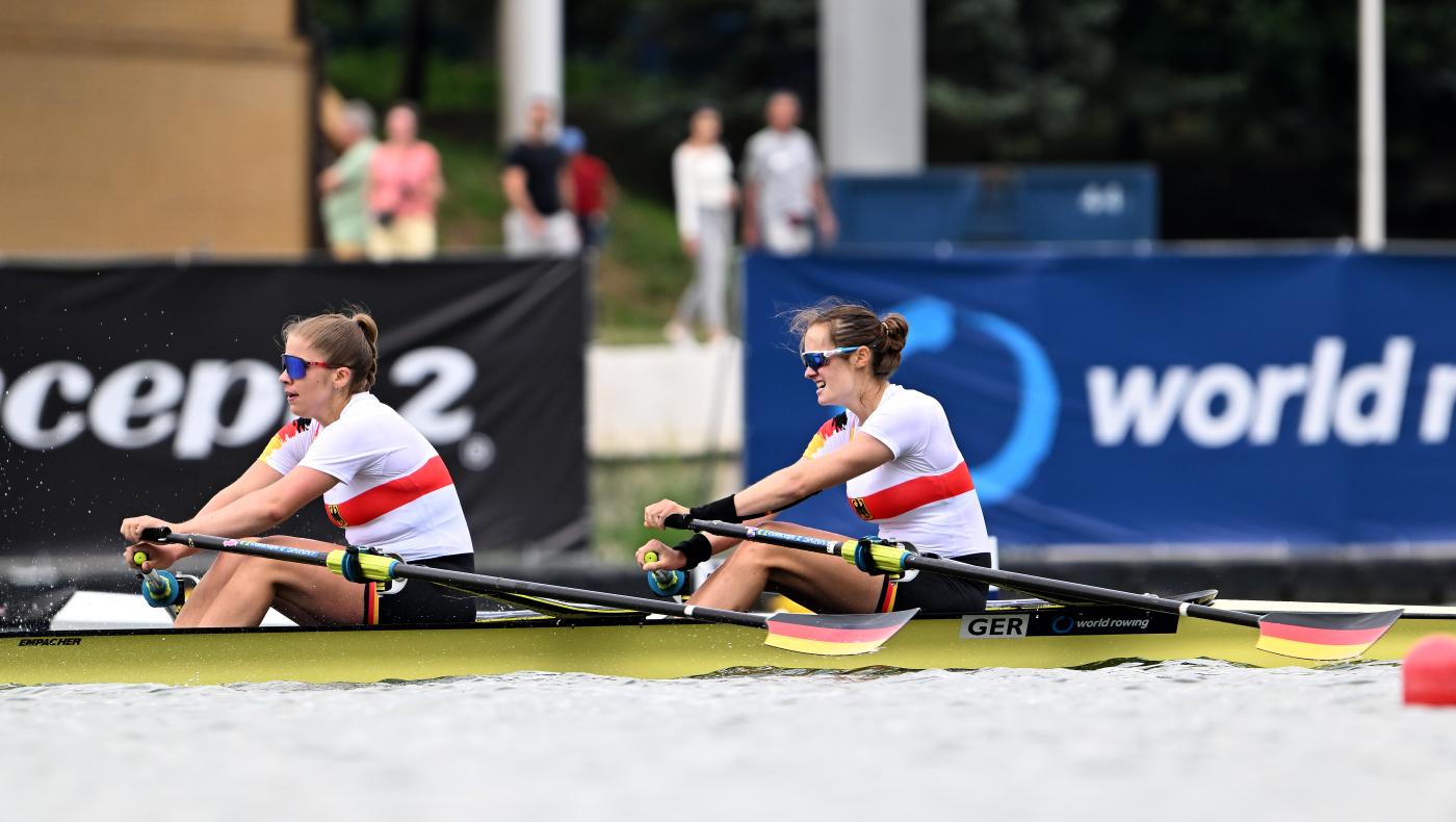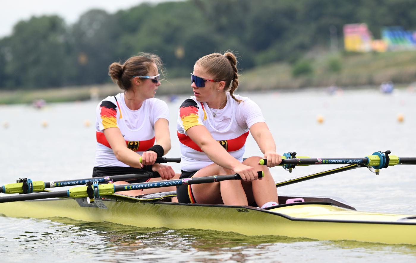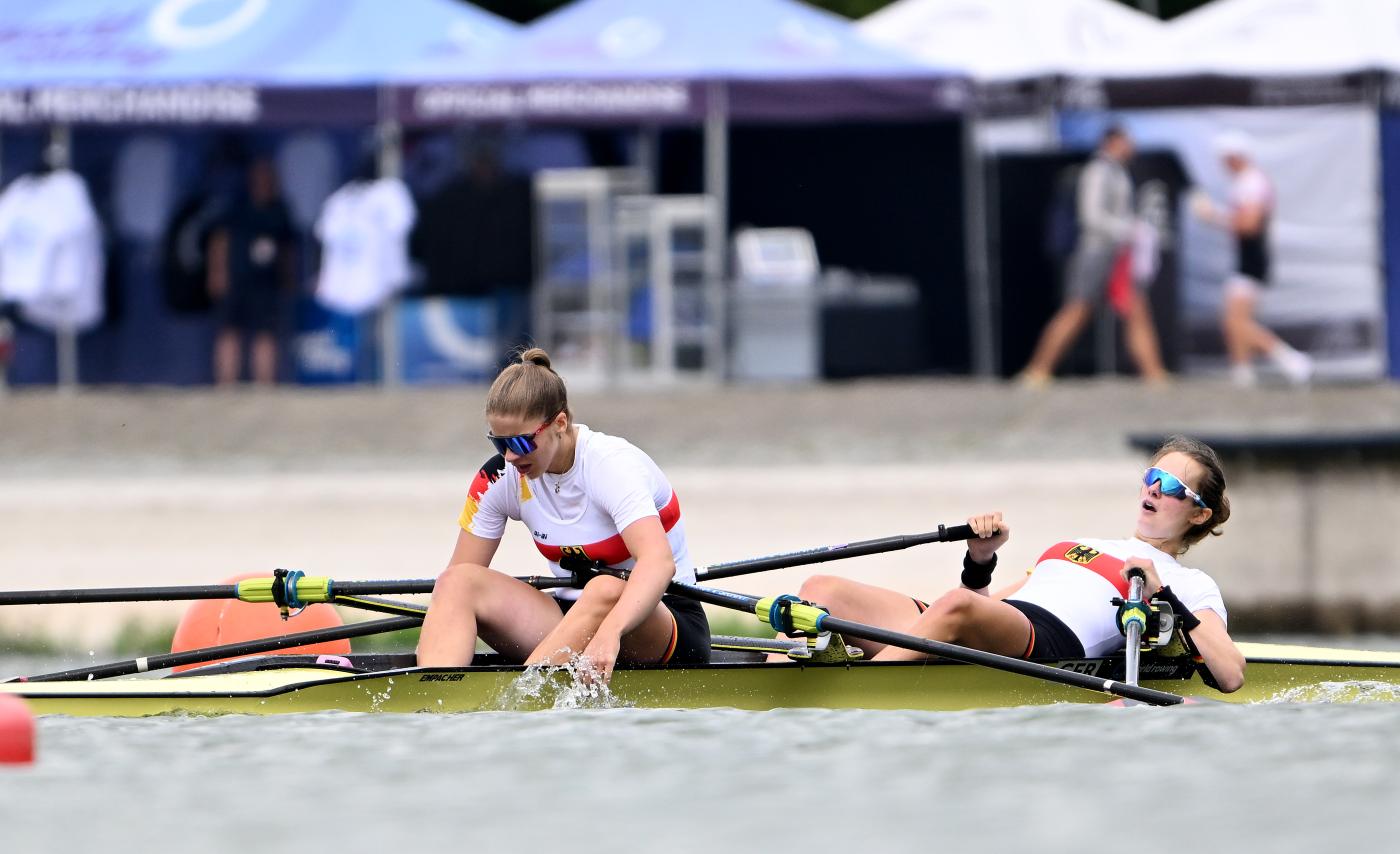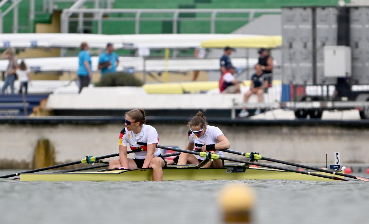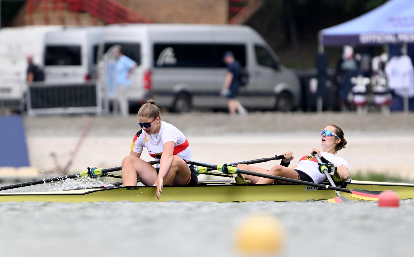 Alles geben mussten auch Johanna Debus und Charlotte Burgdorf, um sich ihr Ticket fürs A-Finale zu sichern. Polen dominierte das Rennen über die gesamte Distanz. Das DRV-Boot lag zunächst auf Rang drei, schob sich mit einem guten Mittelteil aber vor Italien auf Rang zwei. Dann kam der große Auftritt von Rumänien, dass sich in der Endphase des Rennens noch den zweiten Platz hinter Polen sicherte. Debus/Burgdorf waren auch über ihren dritten Rang glücklich und müssen nun versuchen, bis zum A-Finale am Samstag (15:06 Uhr) einigermaßen zu regenerieren.