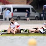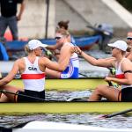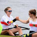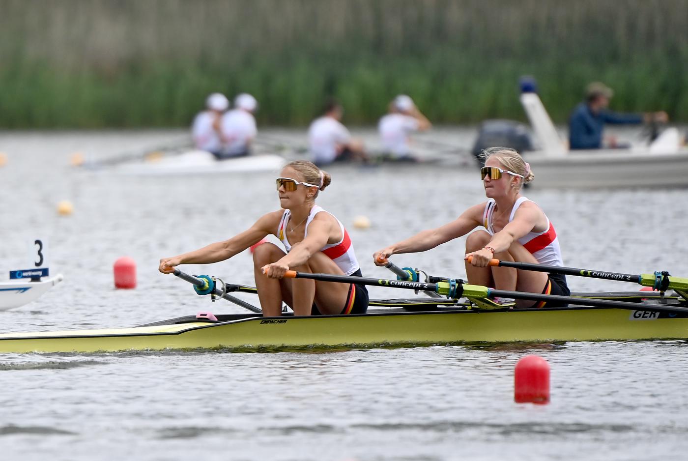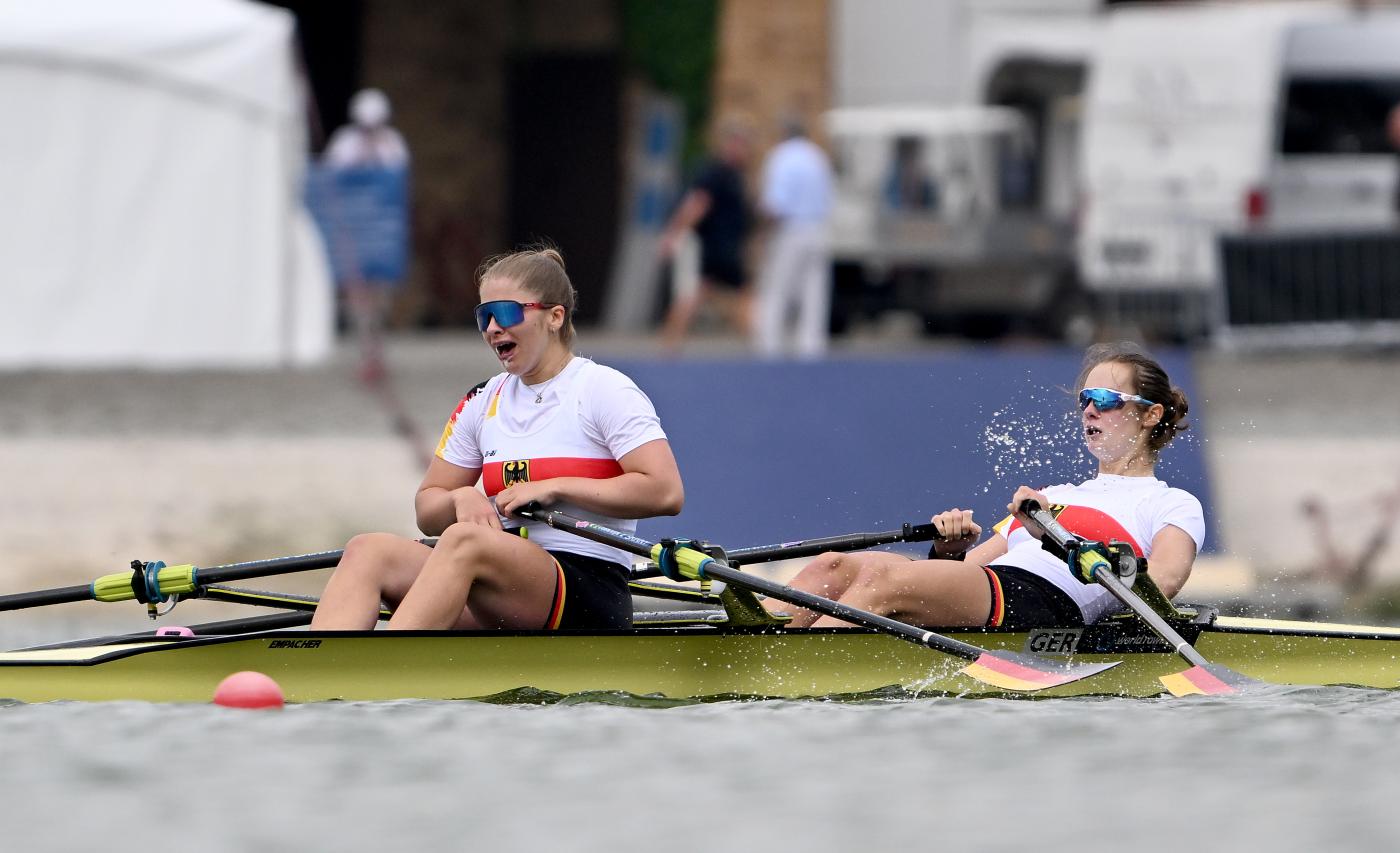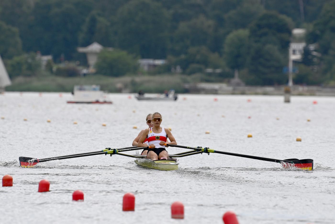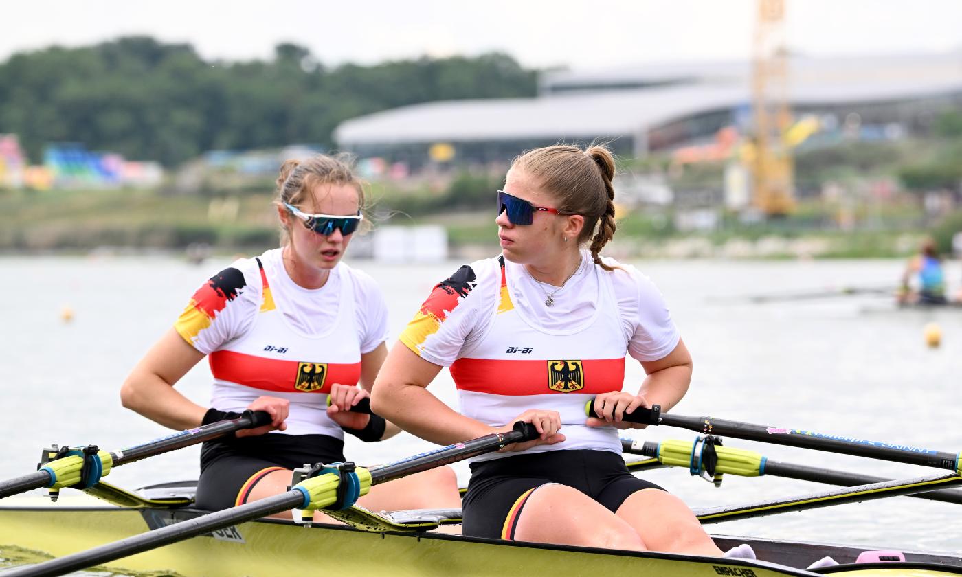 Alles geben mussten auch Johanna Debus und Charlotte Burgdorf, um sich ihr Ticket fürs A-Finale zu sichern. Polen dominierte das Rennen über die gesamte Distanz. Das DRV-Boot lag zunächst auf Rang drei, schob sich mit einem guten Mittelteil aber vor Italien auf Rang zwei. Dann kam der große Auftritt von Rumänien, dass sich in der Endphase des Rennens noch den zweiten Platz hinter Polen sicherte. Debus/Burgdorf waren auch über ihren dritten Rang glücklich und müssen nun versuchen, bis zum A-Finale am Samstag (15:06 Uhr) einigermaßen zu regenerieren.