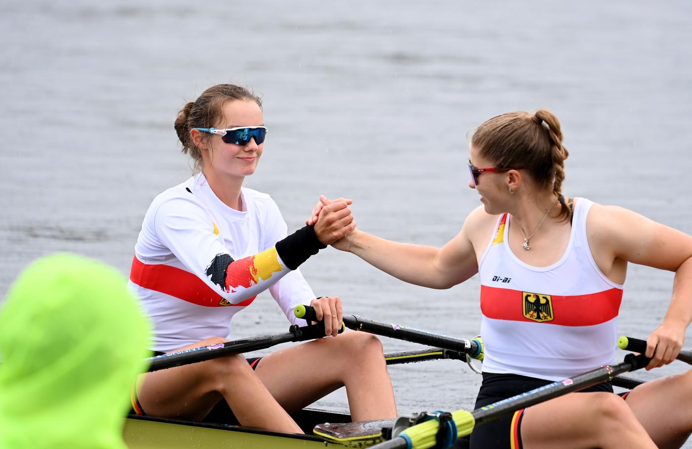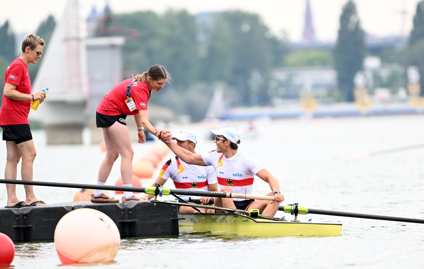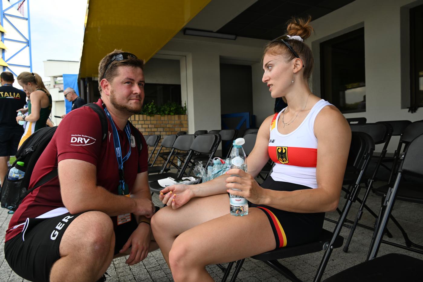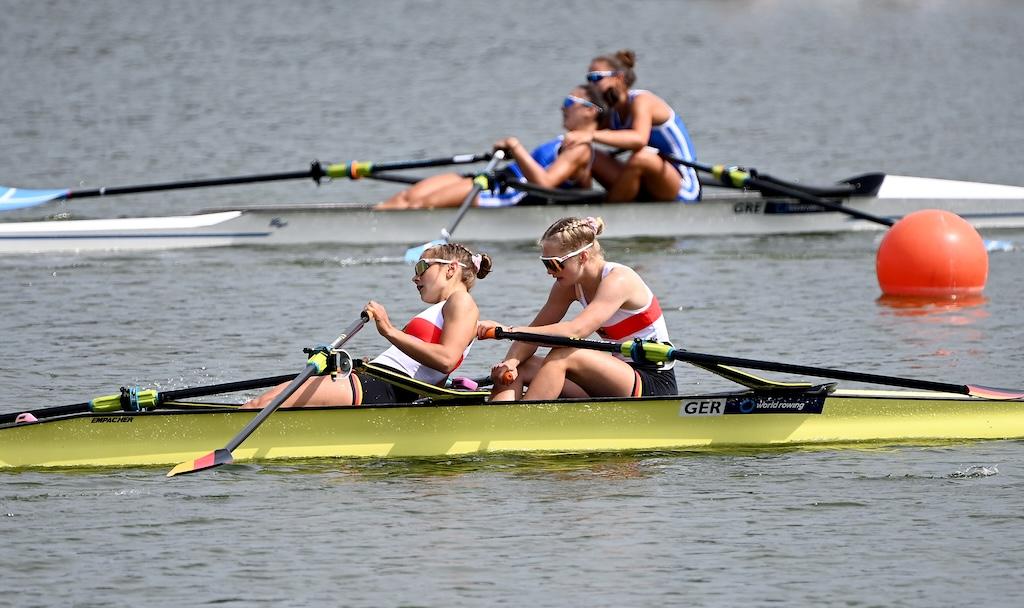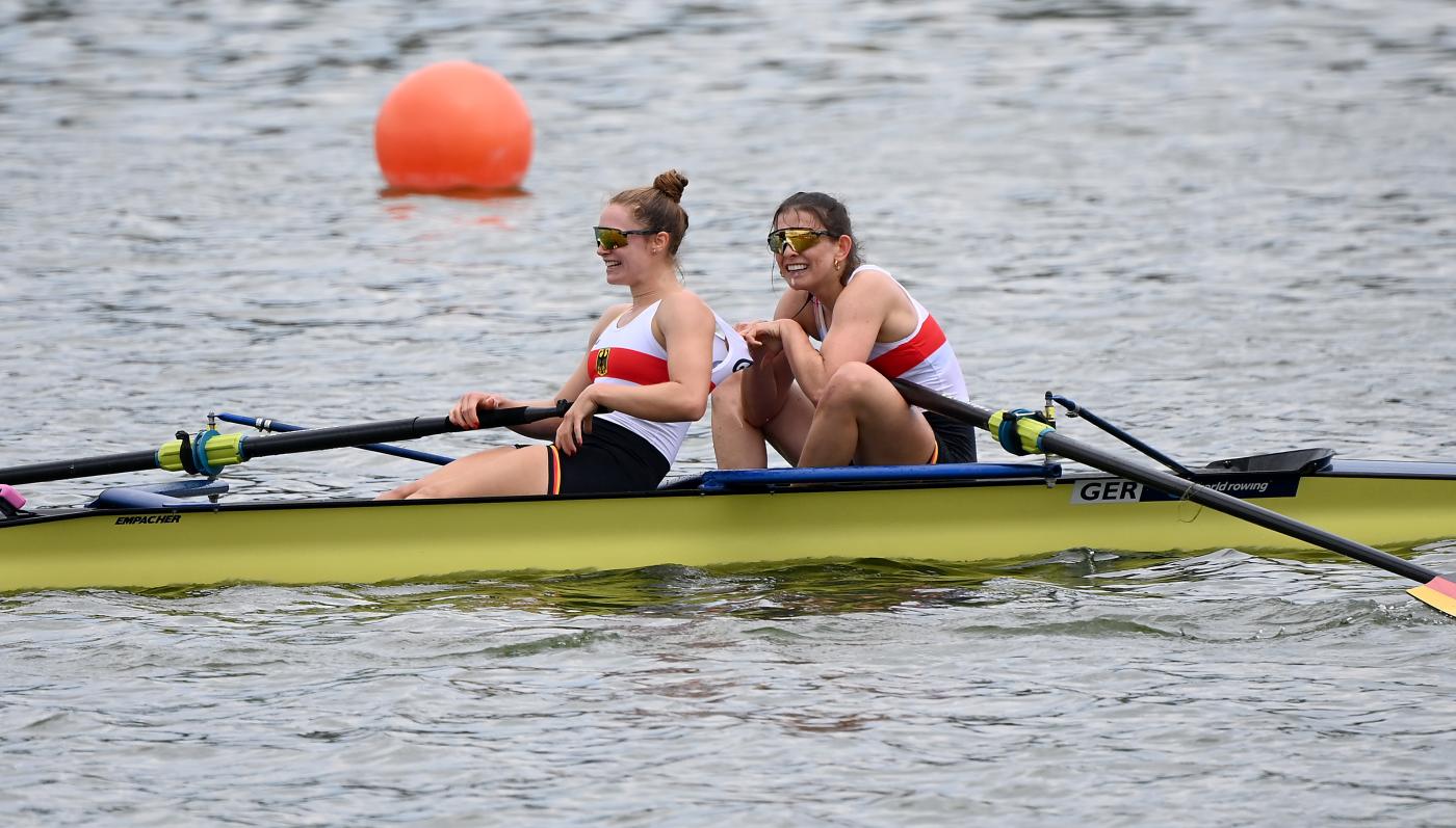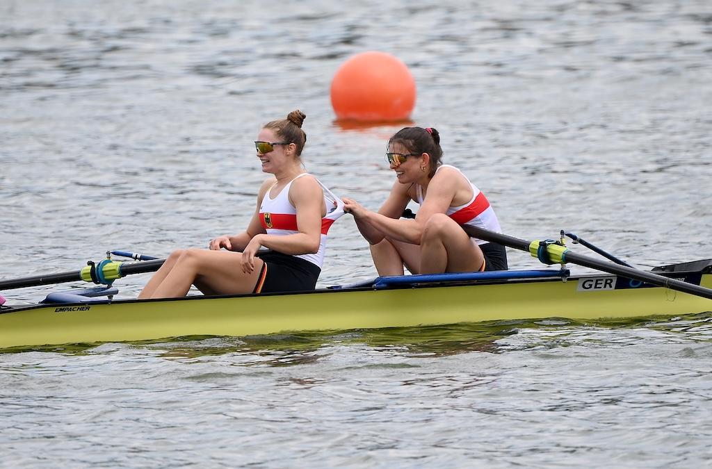 Alles geben mussten auch Johanna Debus und Charlotte Burgdorf, um sich ihr Ticket fürs A-Finale zu sichern. Polen dominierte das Rennen über die gesamte Distanz. Das DRV-Boot lag zunächst auf Rang drei, schob sich mit einem guten Mittelteil aber vor Italien auf Rang zwei. Dann kam der große Auftritt von Rumänien, dass sich in der Endphase des Rennens noch den zweiten Platz hinter Polen sicherte. Debus/Burgdorf waren auch über ihren dritten Rang glücklich und müssen nun versuchen, bis zum A-Finale am Samstag (15:06 Uhr) einigermaßen zu regenerieren.