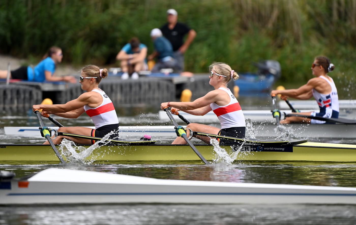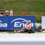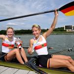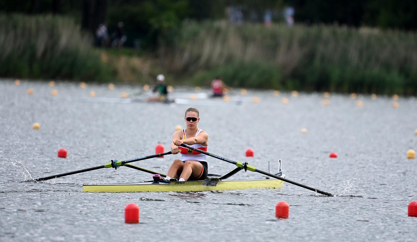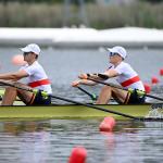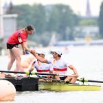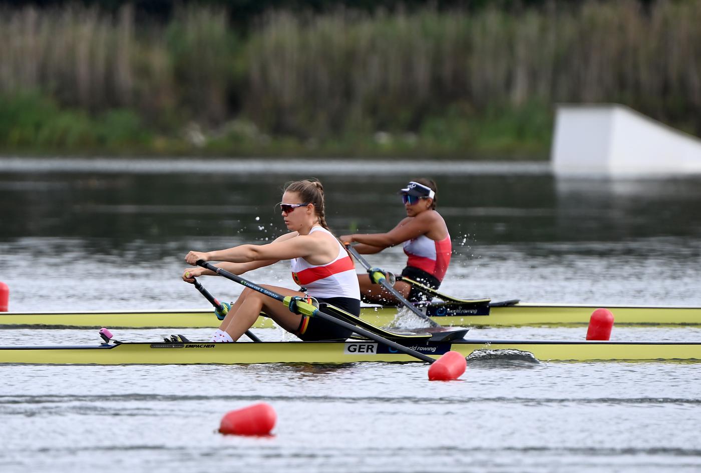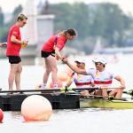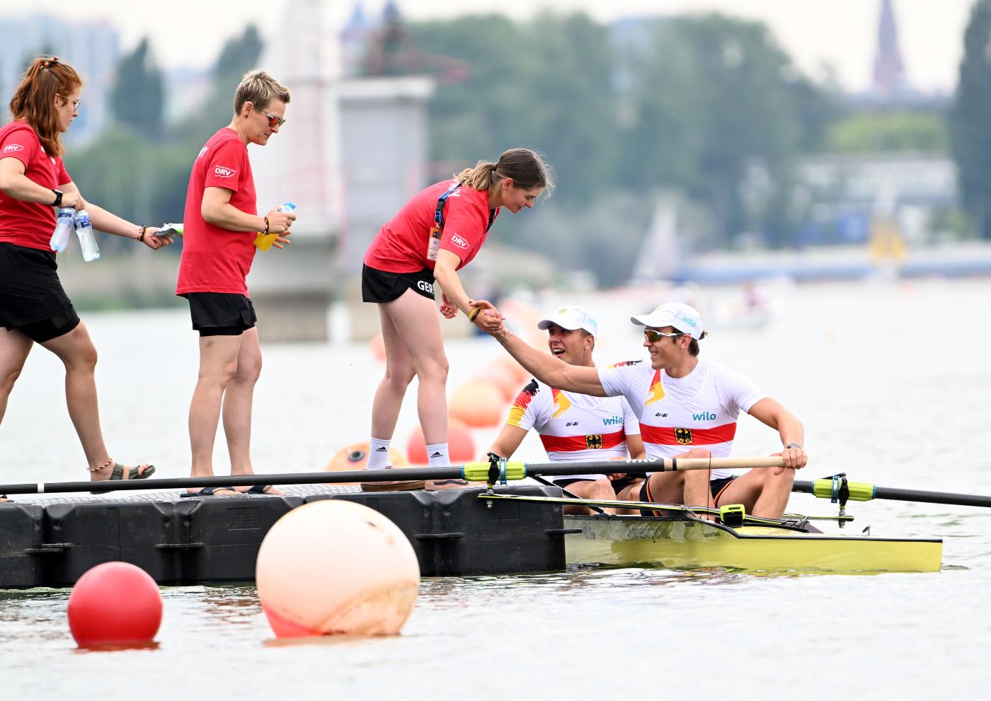 Alles geben mussten auch Johanna Debus und Charlotte Burgdorf, um sich ihr Ticket fürs A-Finale zu sichern. Polen dominierte das Rennen über die gesamte Distanz. Das DRV-Boot lag zunächst auf Rang drei, schob sich mit einem guten Mittelteil aber vor Italien auf Rang zwei. Dann kam der große Auftritt von Rumänien, dass sich in der Endphase des Rennens noch den zweiten Platz hinter Polen sicherte. Debus/Burgdorf waren auch über ihren dritten Rang glücklich und müssen nun versuchen, bis zum A-Finale am Samstag (15:06 Uhr) einigermaßen zu regenerieren.