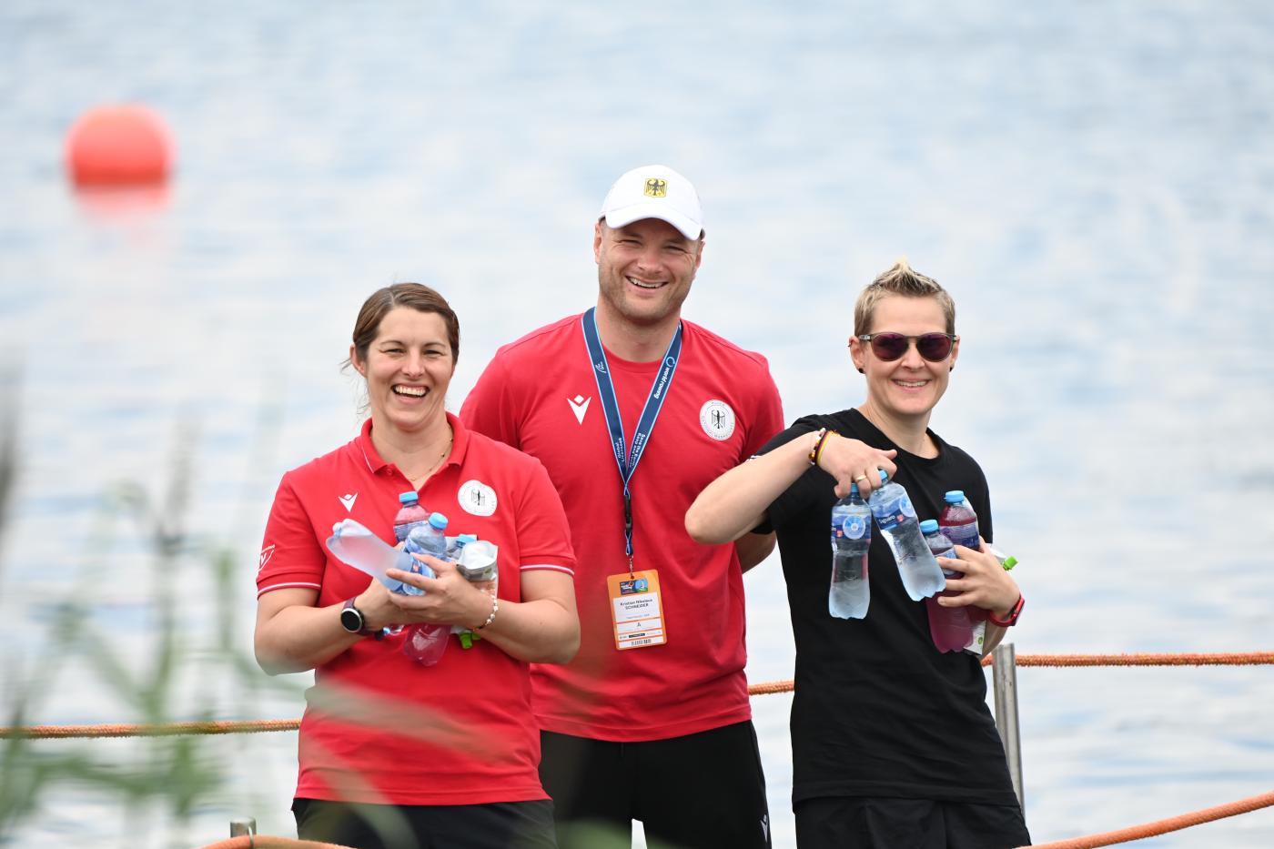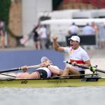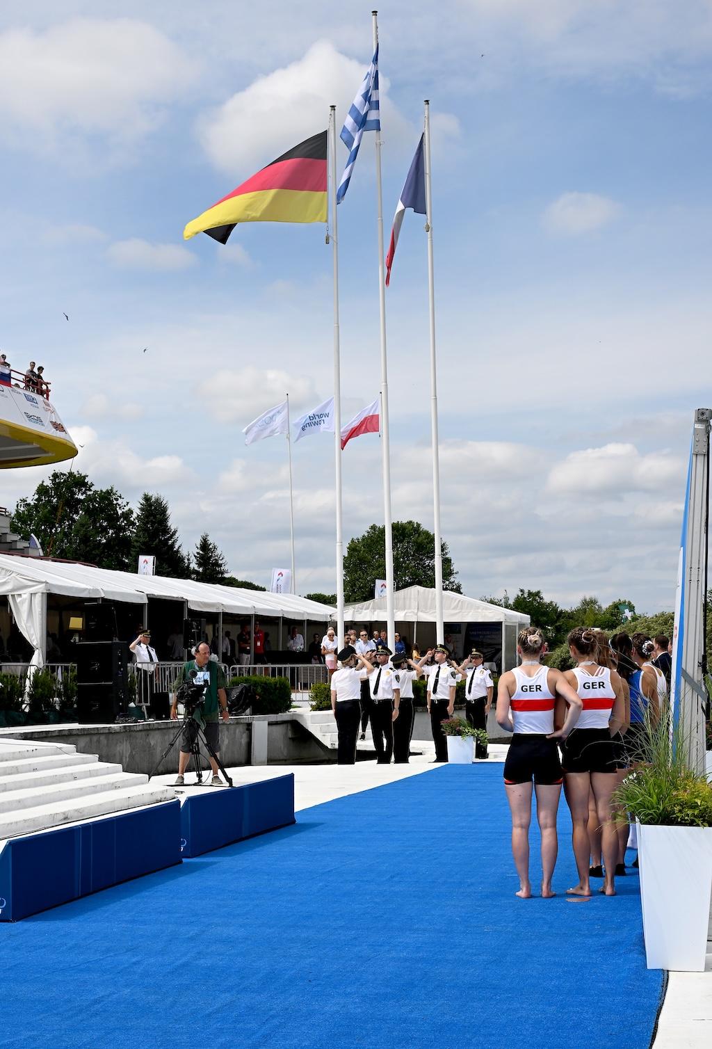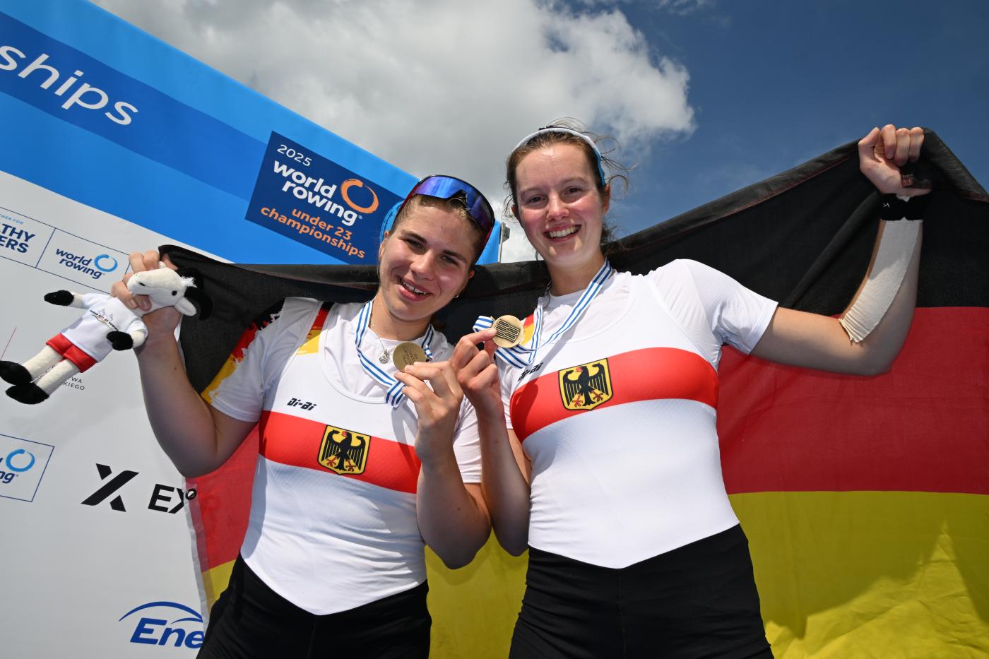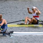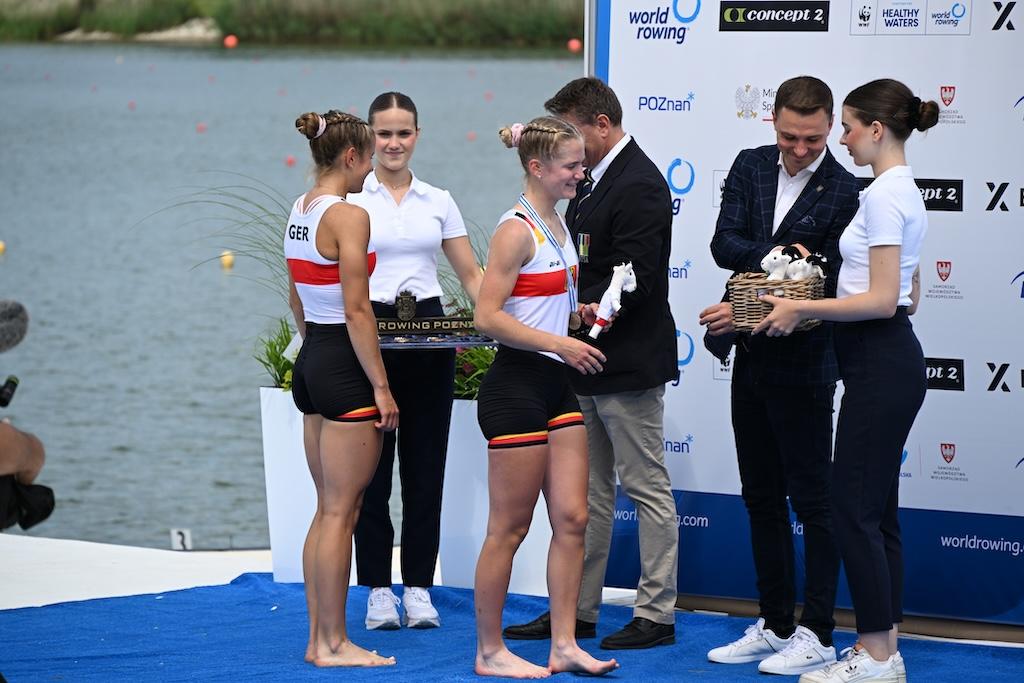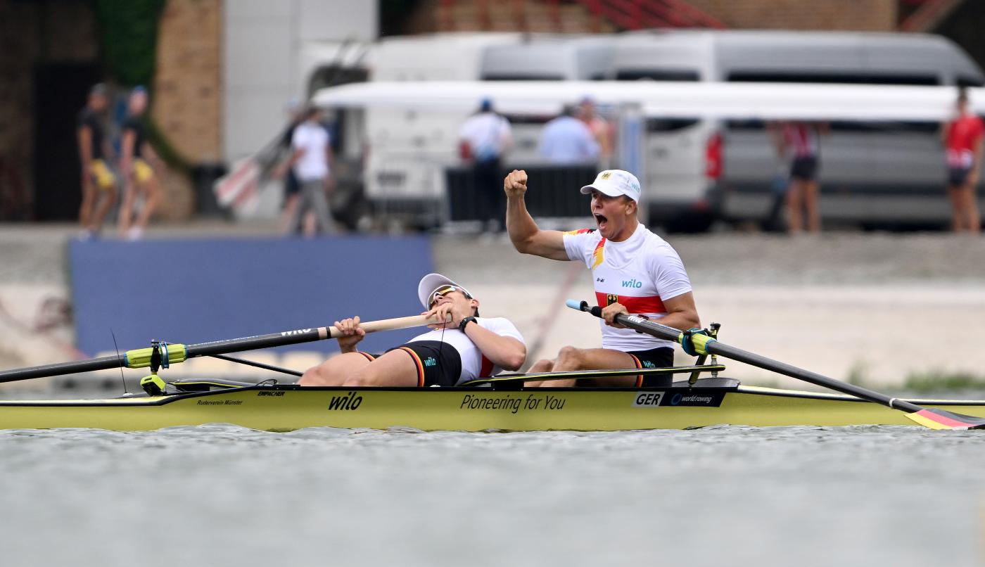 Alles geben mussten auch Johanna Debus und Charlotte Burgdorf, um sich ihr Ticket fürs A-Finale zu sichern. Polen dominierte das Rennen über die gesamte Distanz. Das DRV-Boot lag zunächst auf Rang drei, schob sich mit einem guten Mittelteil aber vor Italien auf Rang zwei. Dann kam der große Auftritt von Rumänien, dass sich in der Endphase des Rennens noch den zweiten Platz hinter Polen sicherte. Debus/Burgdorf waren auch über ihren dritten Rang glücklich und müssen nun versuchen, bis zum A-Finale am Samstag (15:06 Uhr) einigermaßen zu regenerieren.