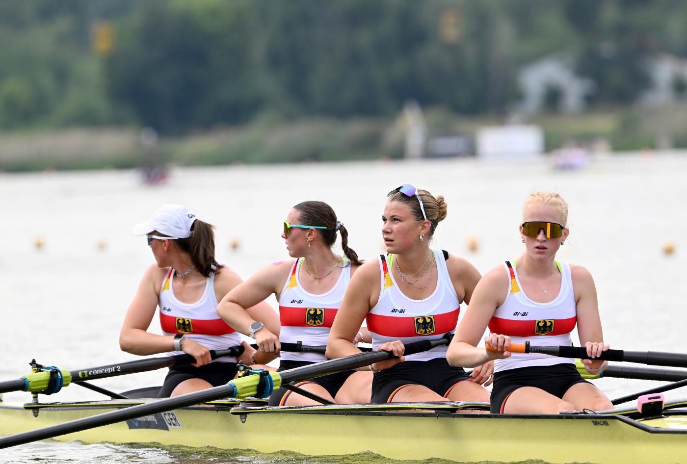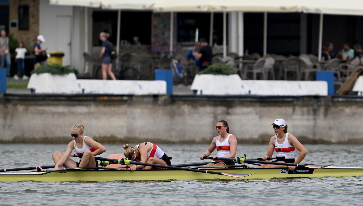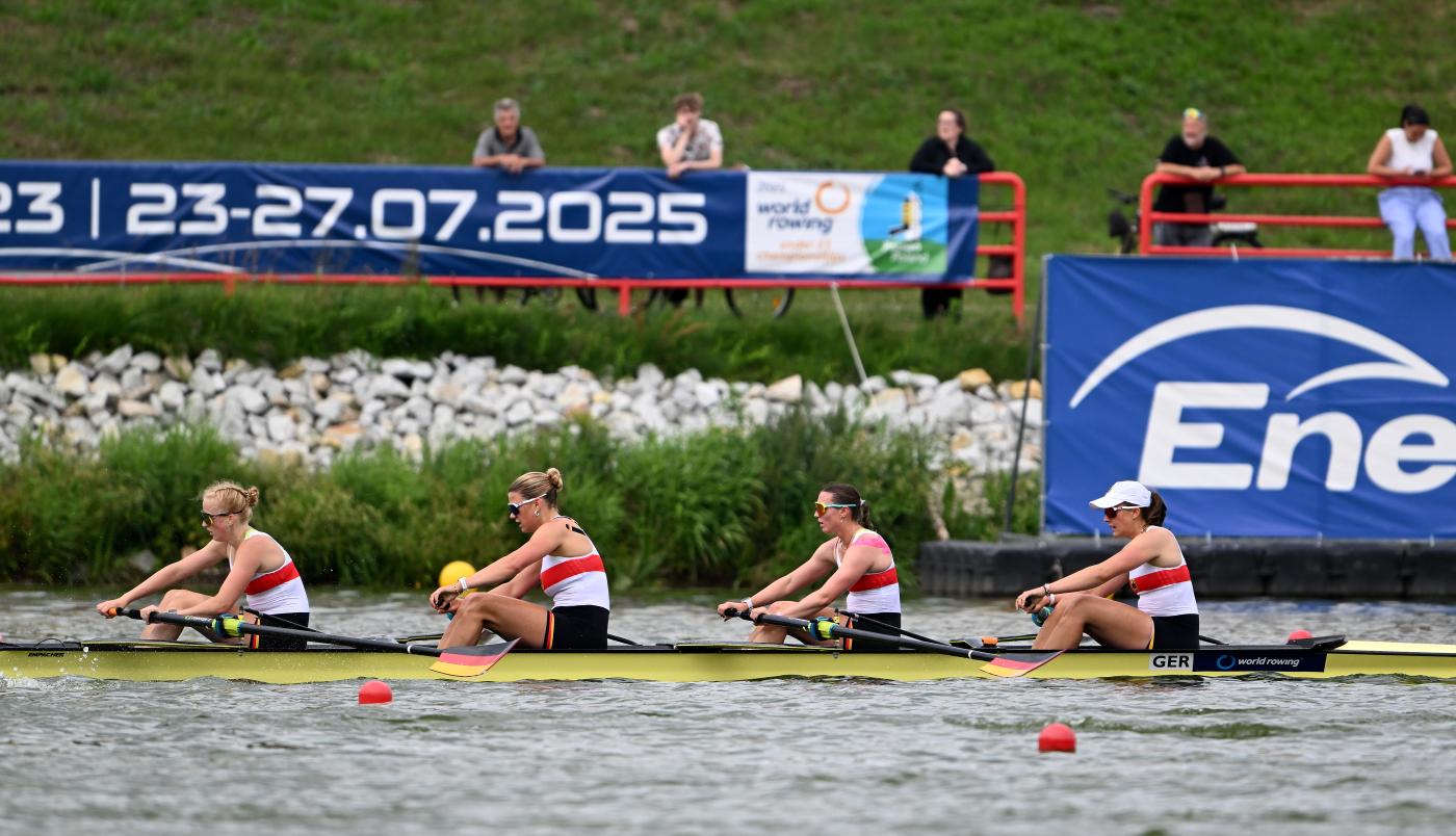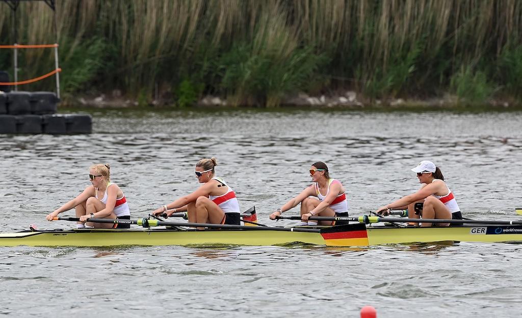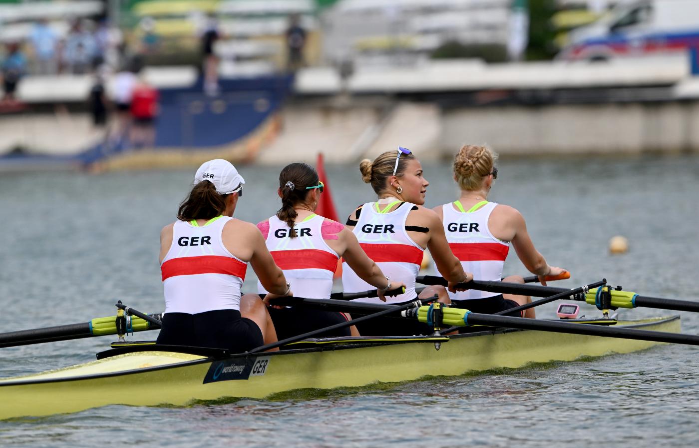 Stark besetzt war das Halbfinale des Frauen-Vierers ohne mit Raphaela Werner, Elena Carius, Nike Utesch und Helena Wegener im deutschen Boot. Schon früh im Rennen deutete sich an, dass es für die DRV-Mannschaft schwer werden könnte, vom vierten Rang noch weiter nach vorne zu stoßen. Der Rückstand auf die lange auf Platz drei liegenden Rumäninnen wuchs stetig an. Am Ende sicherte sich Rumänien mit einem langen Spurt sogar noch Rang zwei hinter Frankreich, Dritte wurden die USA vor dem DRV-Boot. Das bereitet sich nun auf das B-Finale am Samstag (13.46 Uhr) vor, in dem noch eine gute Platzierung herausgefahren werden soll.
