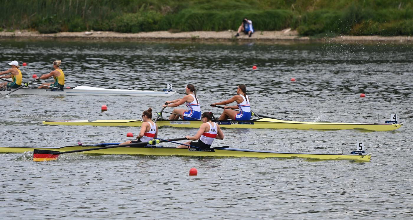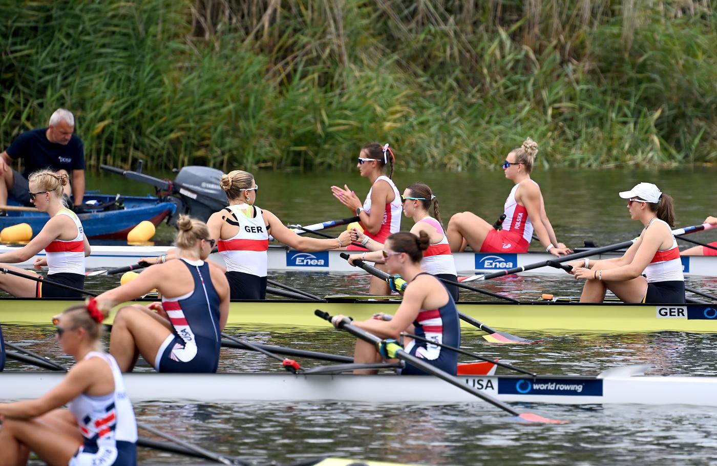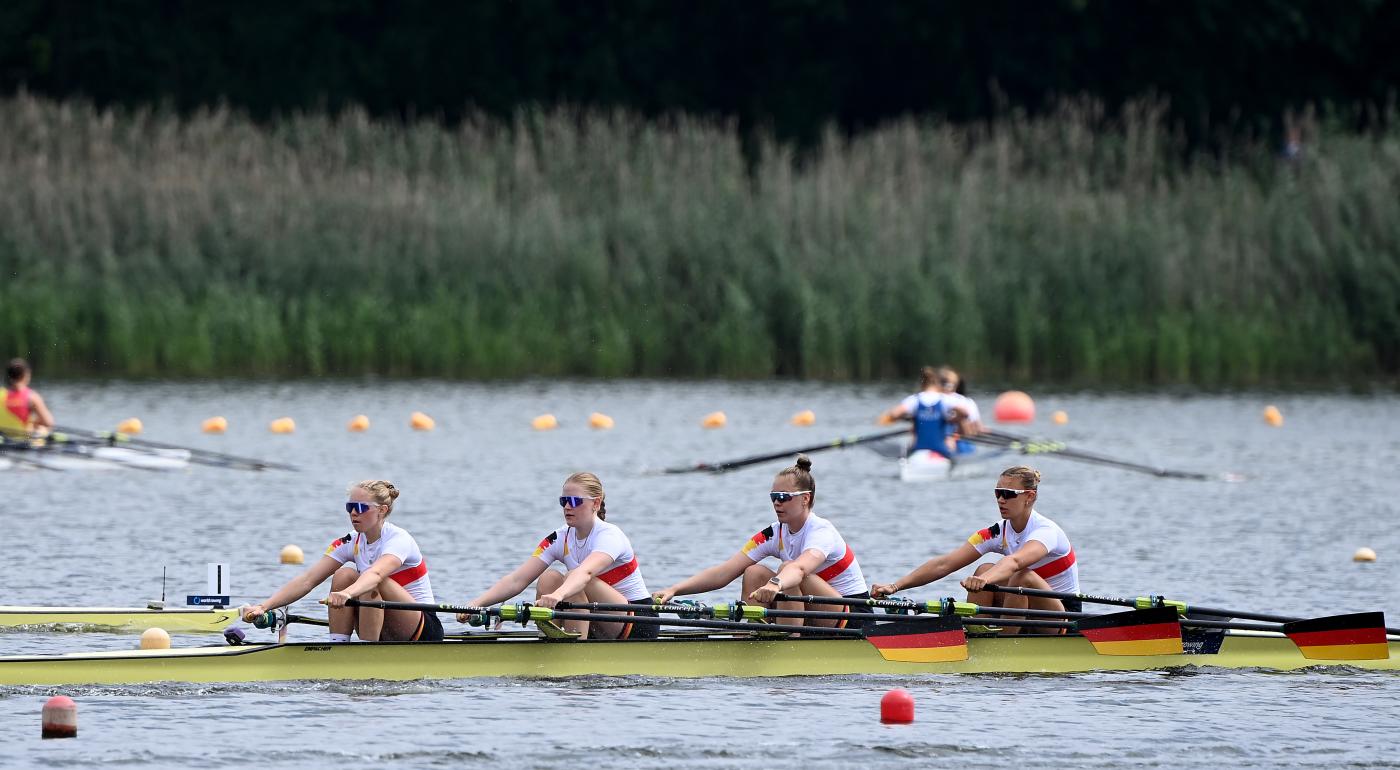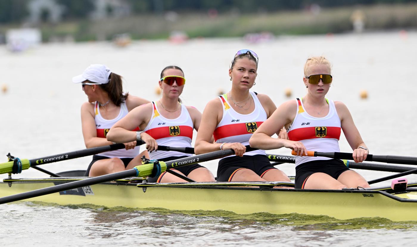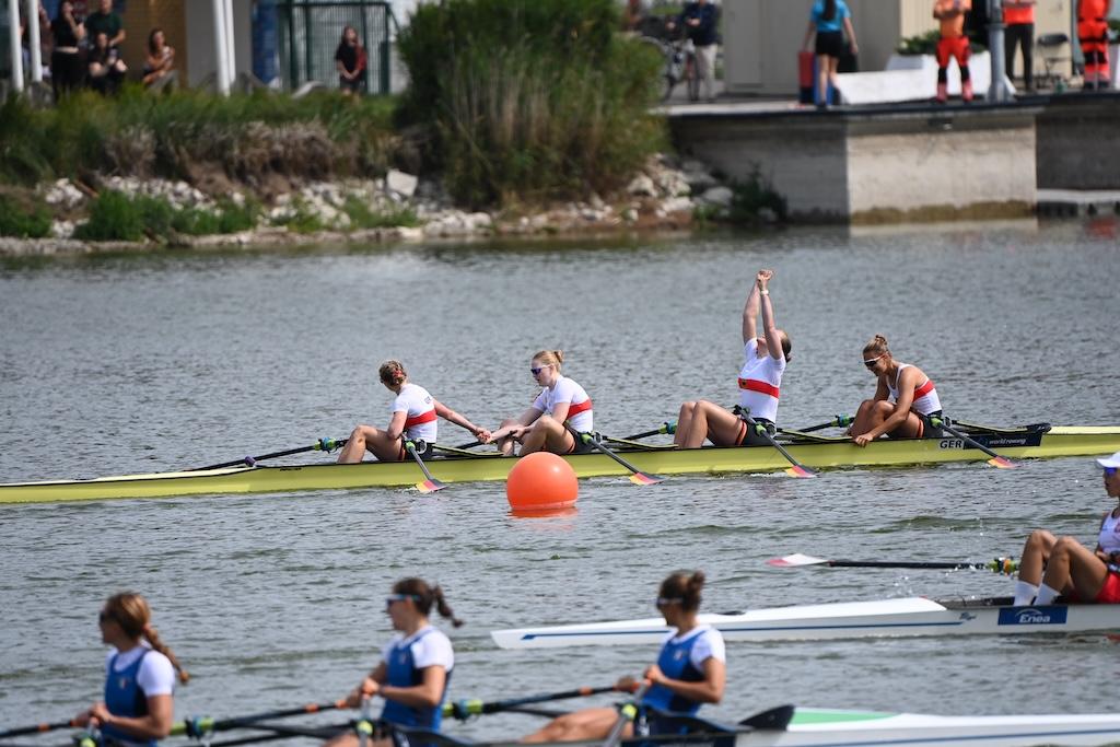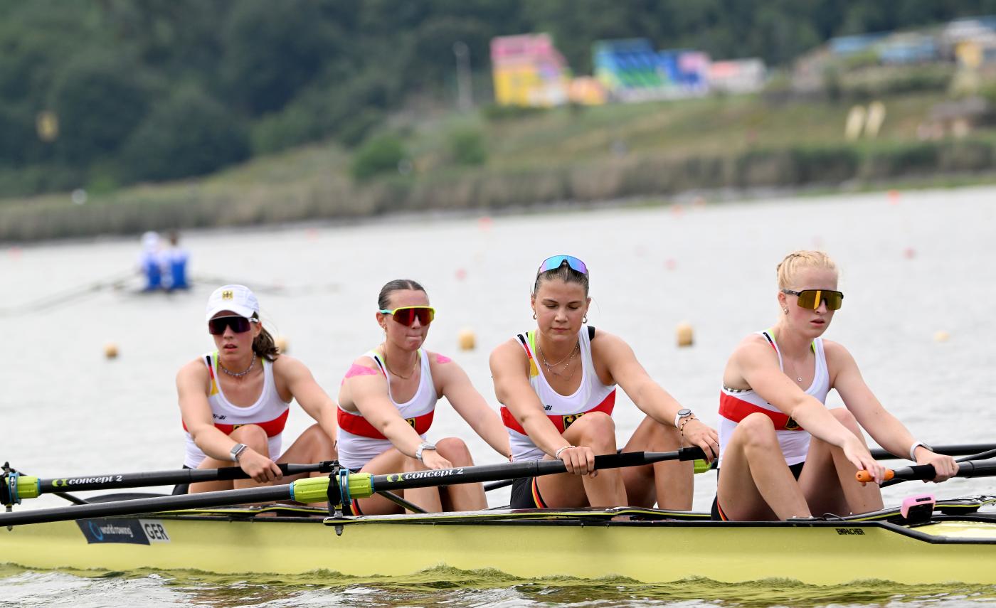 Stark besetzt war das Halbfinale des Frauen-Vierers ohne mit Raphaela Werner, Elena Carius, Nike Utesch und Helena Wegener im deutschen Boot. Schon früh im Rennen deutete sich an, dass es für die DRV-Mannschaft schwer werden könnte, vom vierten Rang noch weiter nach vorne zu stoßen. Der Rückstand auf die lange auf Platz drei liegenden Rumäninnen wuchs stetig an. Am Ende sicherte sich Rumänien mit einem langen Spurt sogar noch Rang zwei hinter Frankreich, Dritte wurden die USA vor dem DRV-Boot. Das bereitet sich nun auf das B-Finale am Samstag (13.46 Uhr) vor, in dem noch eine gute Platzierung herausgefahren werden soll.