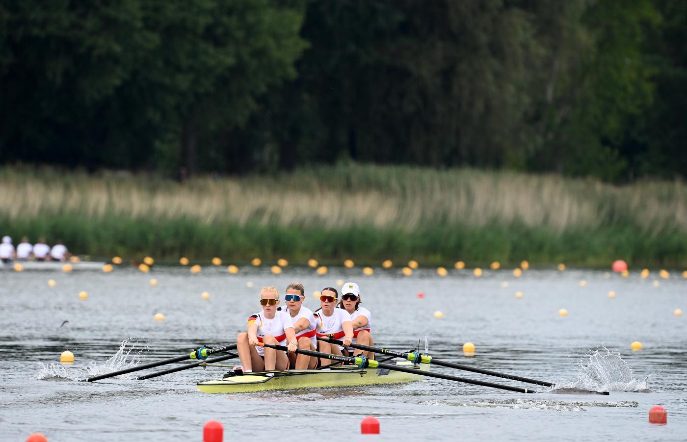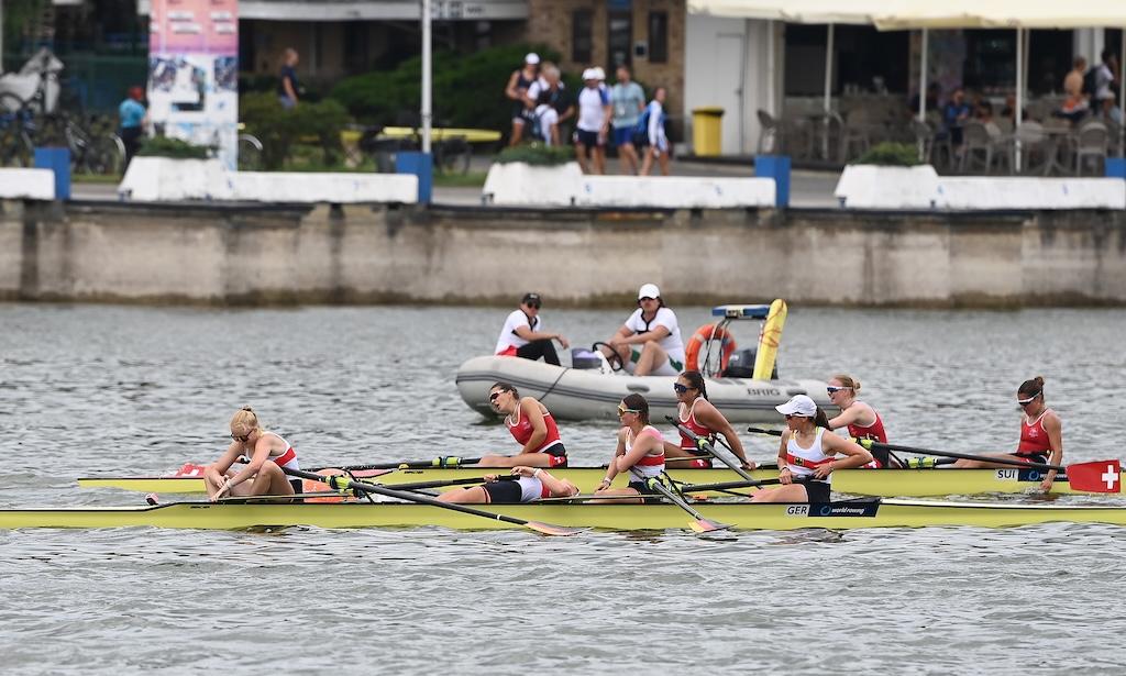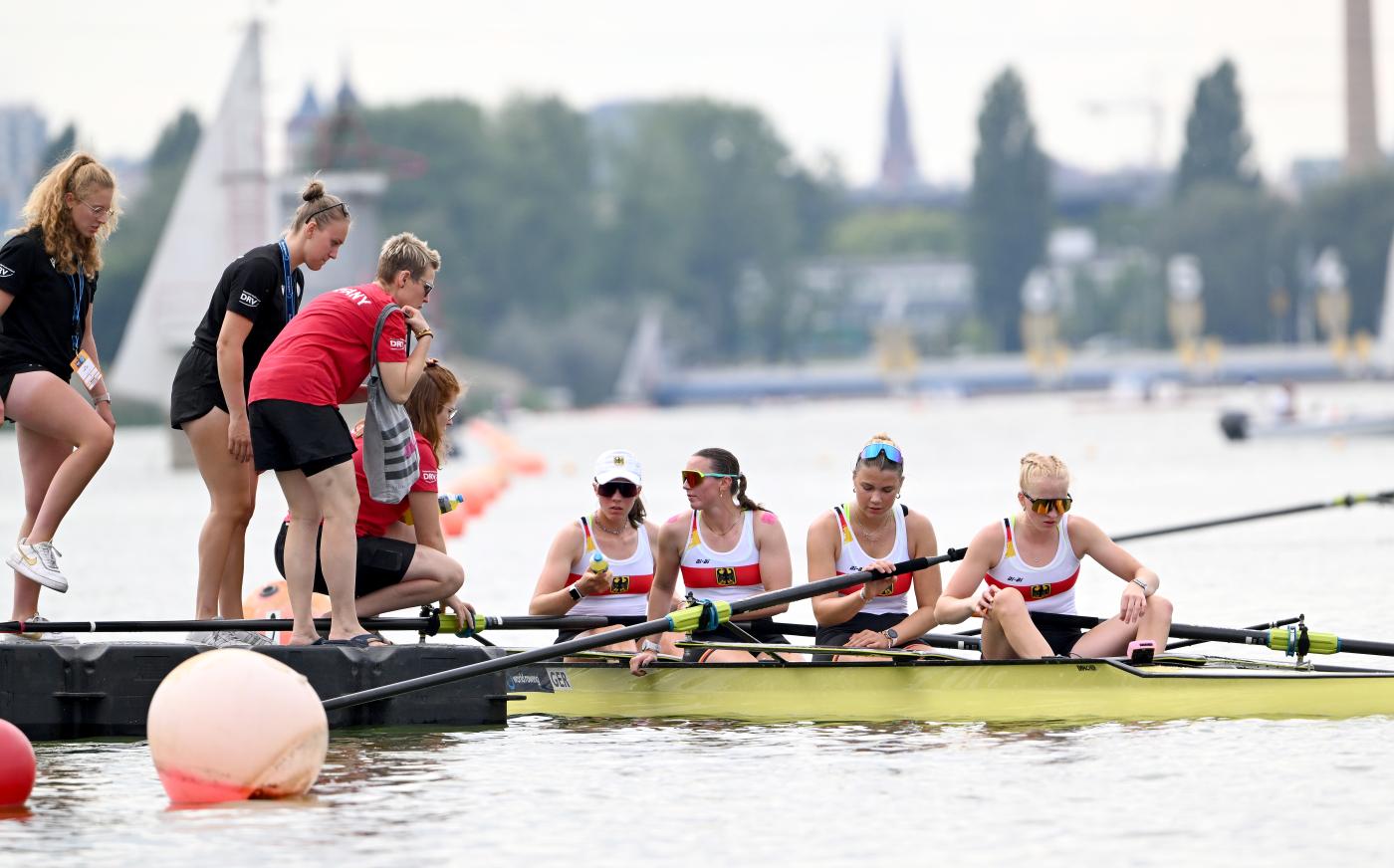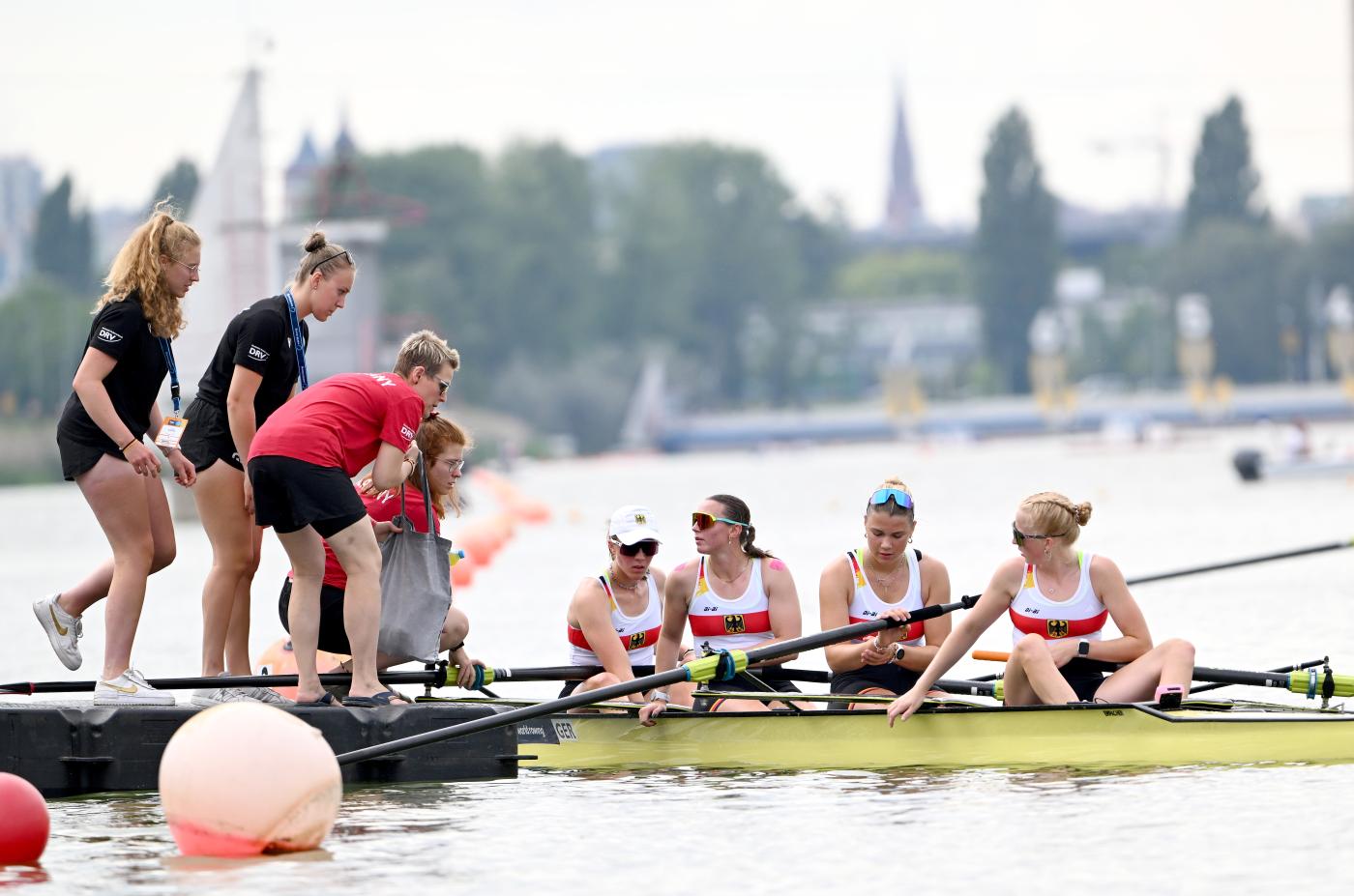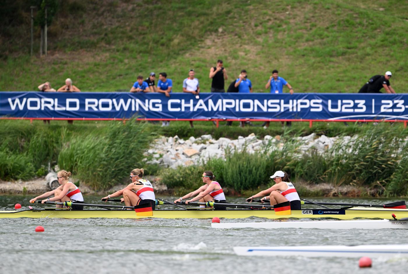 Stark besetzt war das Halbfinale des Frauen-Vierers ohne mit Raphaela Werner, Elena Carius, Nike Utesch und Helena Wegener im deutschen Boot. Schon früh im Rennen deutete sich an, dass es für die DRV-Mannschaft schwer werden könnte, vom vierten Rang noch weiter nach vorne zu stoßen. Der Rückstand auf die lange auf Platz drei liegenden Rumäninnen wuchs stetig an. Am Ende sicherte sich Rumänien mit einem langen Spurt sogar noch Rang zwei hinter Frankreich, Dritte wurden die USA vor dem DRV-Boot. Das bereitet sich nun auf das B-Finale am Samstag (13.46 Uhr) vor, in dem noch eine gute Platzierung herausgefahren werden soll.