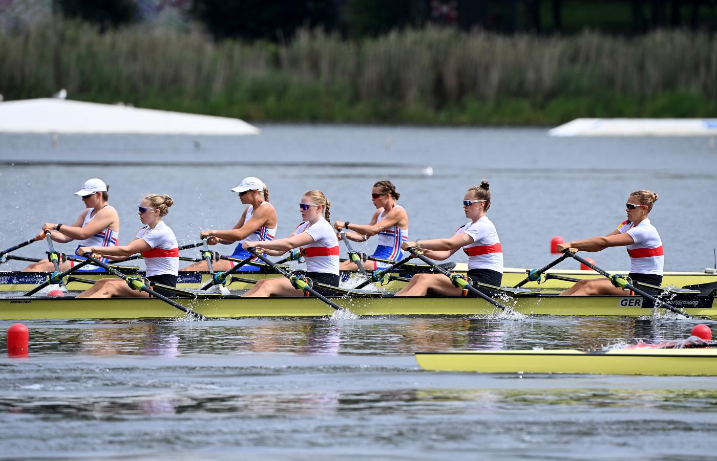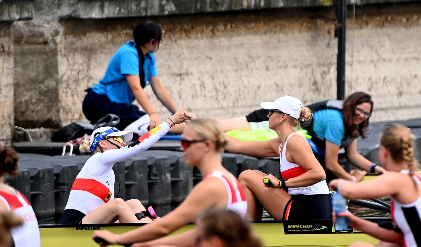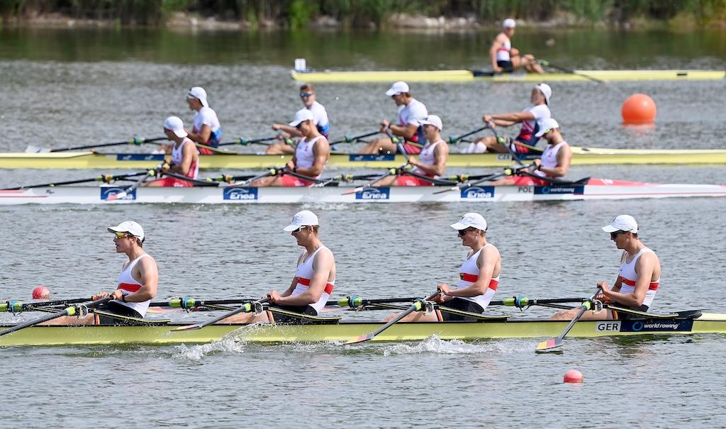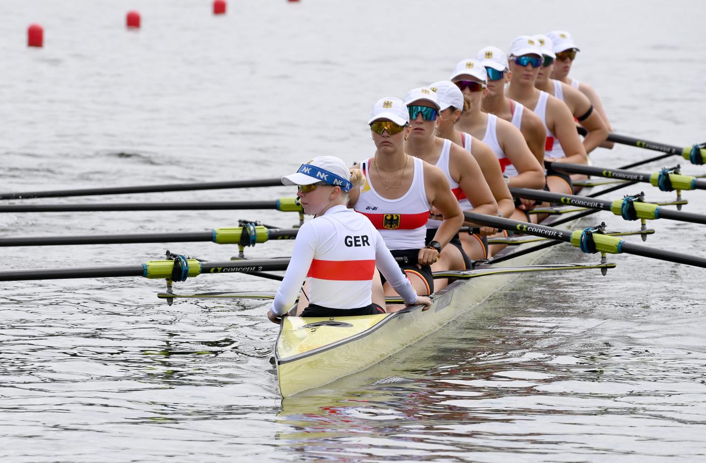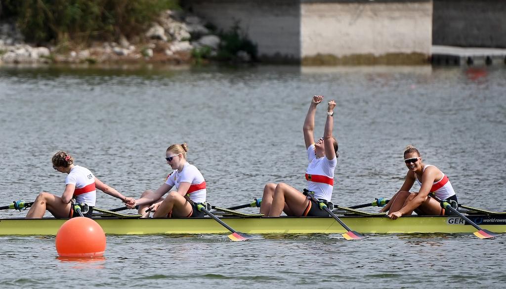 Stark besetzt war das Halbfinale des Frauen-Vierers ohne mit Raphaela Werner, Elena Carius, Nike Utesch und Helena Wegener im deutschen Boot. Schon früh im Rennen deutete sich an, dass es für die DRV-Mannschaft schwer werden könnte, vom vierten Rang noch weiter nach vorne zu stoßen. Der Rückstand auf die lange auf Platz drei liegenden Rumäninnen wuchs stetig an. Am Ende sicherte sich Rumänien mit einem langen Spurt sogar noch Rang zwei hinter Frankreich, Dritte wurden die USA vor dem DRV-Boot. Das bereitet sich nun auf das B-Finale am Samstag (13.46 Uhr) vor, in dem noch eine gute Platzierung herausgefahren werden soll.