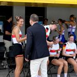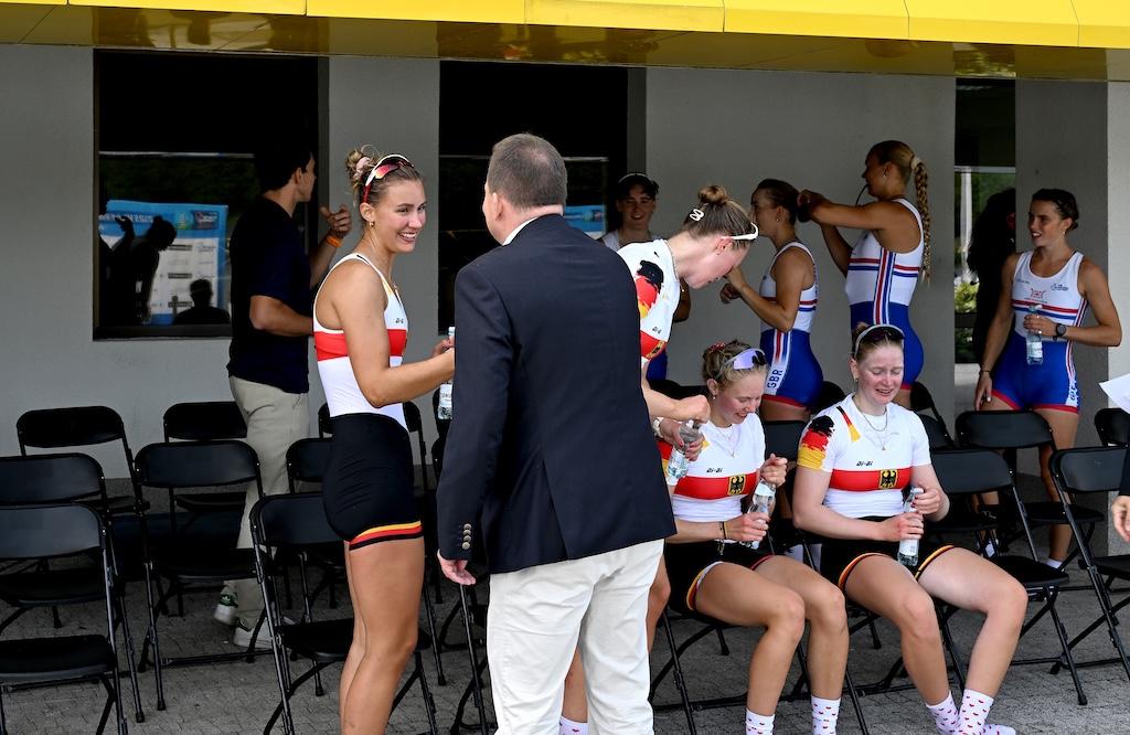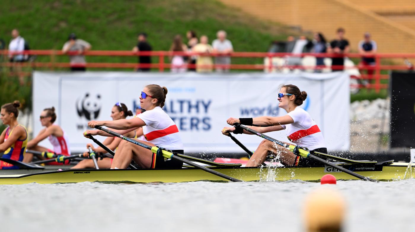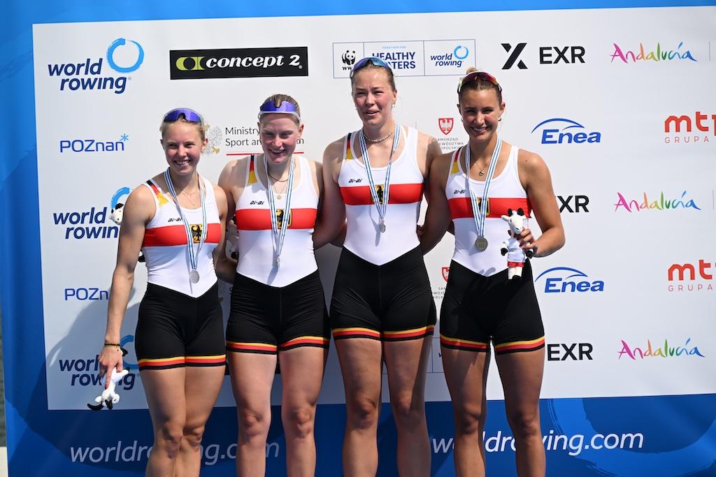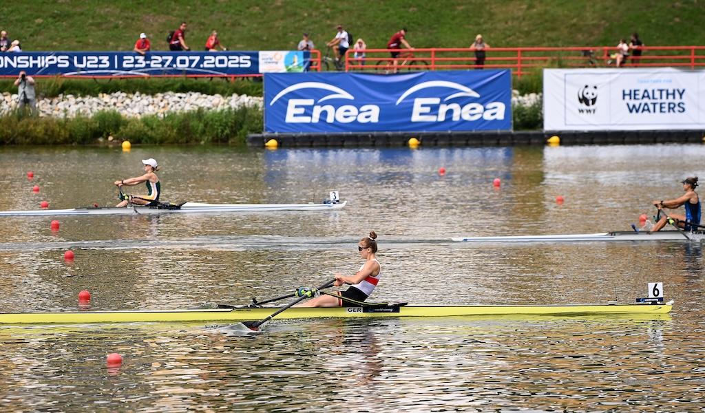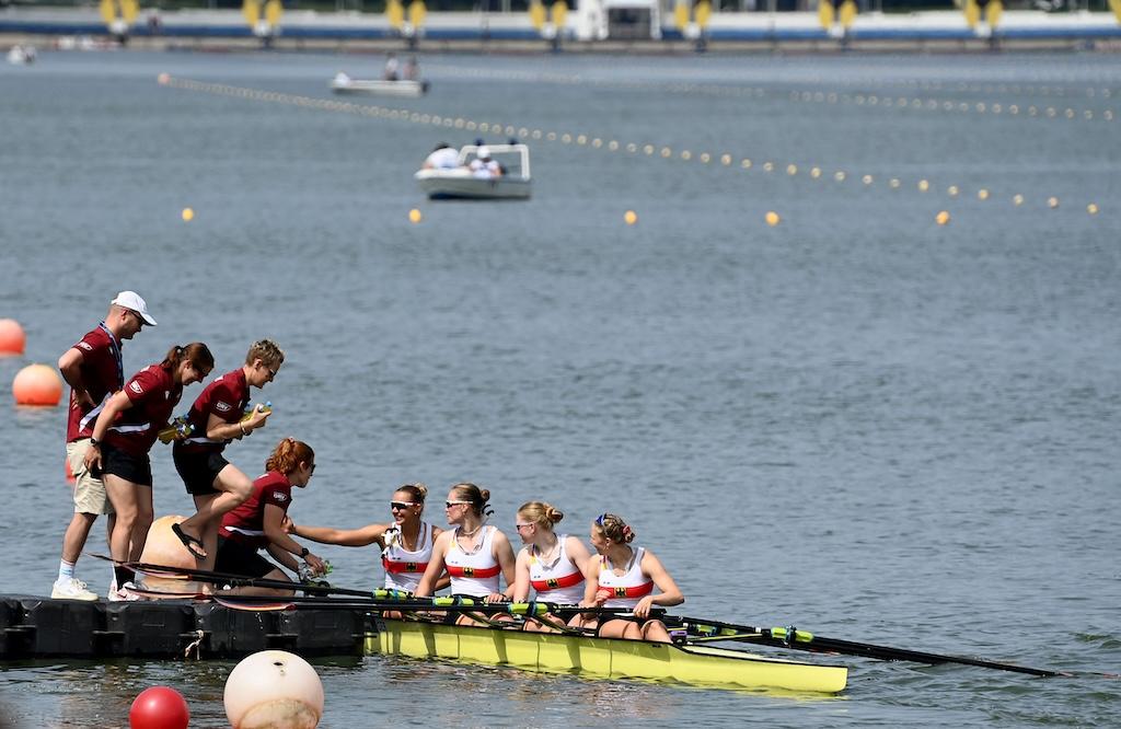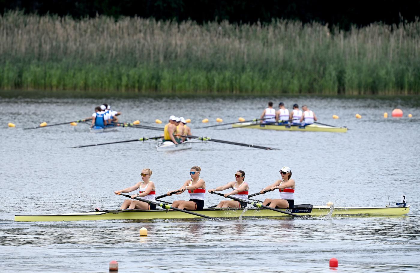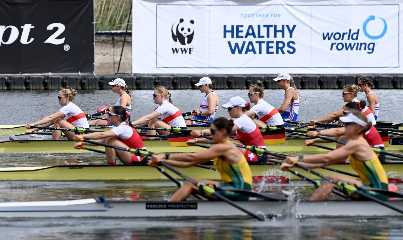 Stark besetzt war das Halbfinale des Frauen-Vierers ohne mit Raphaela Werner, Elena Carius, Nike Utesch und Helena Wegener im deutschen Boot. Schon früh im Rennen deutete sich an, dass es für die DRV-Mannschaft schwer werden könnte, vom vierten Rang noch weiter nach vorne zu stoßen. Der Rückstand auf die lange auf Platz drei liegenden Rumäninnen wuchs stetig an. Am Ende sicherte sich Rumänien mit einem langen Spurt sogar noch Rang zwei hinter Frankreich, Dritte wurden die USA vor dem DRV-Boot. Das bereitet sich nun auf das B-Finale am Samstag (13.46 Uhr) vor, in dem noch eine gute Platzierung herausgefahren werden soll.