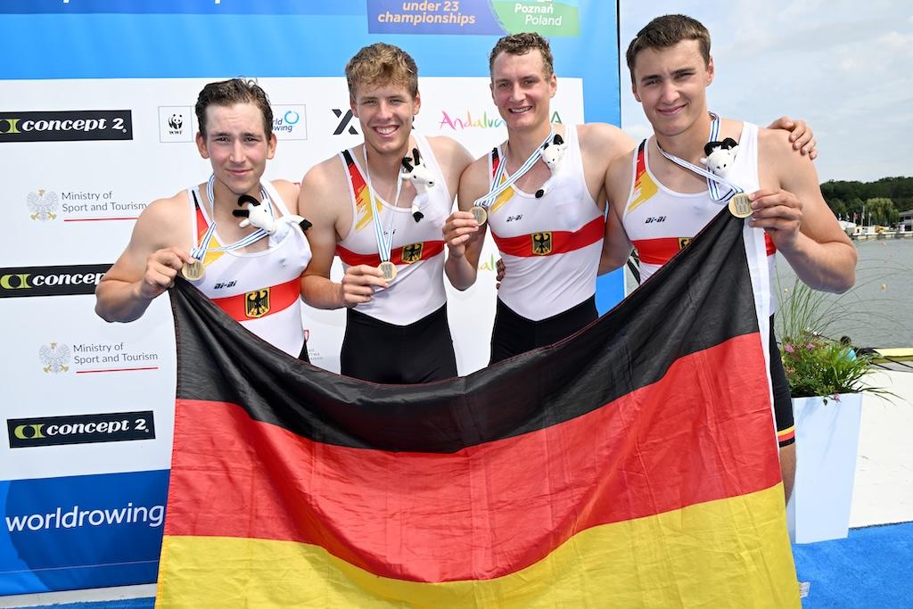 Was für ein schöner Freitagnachmittag für die deutsche Nationalmannschaft bei der U23-WM: Fünf DRV-Boote bewarben sich nacheinander in den Halbfinals um die Endlauf-Teilnehme, vier bissen sich in fast durchweg engen Rennen durch und dürfen nun am Samstag in Poznan um Edelmetall antreten.