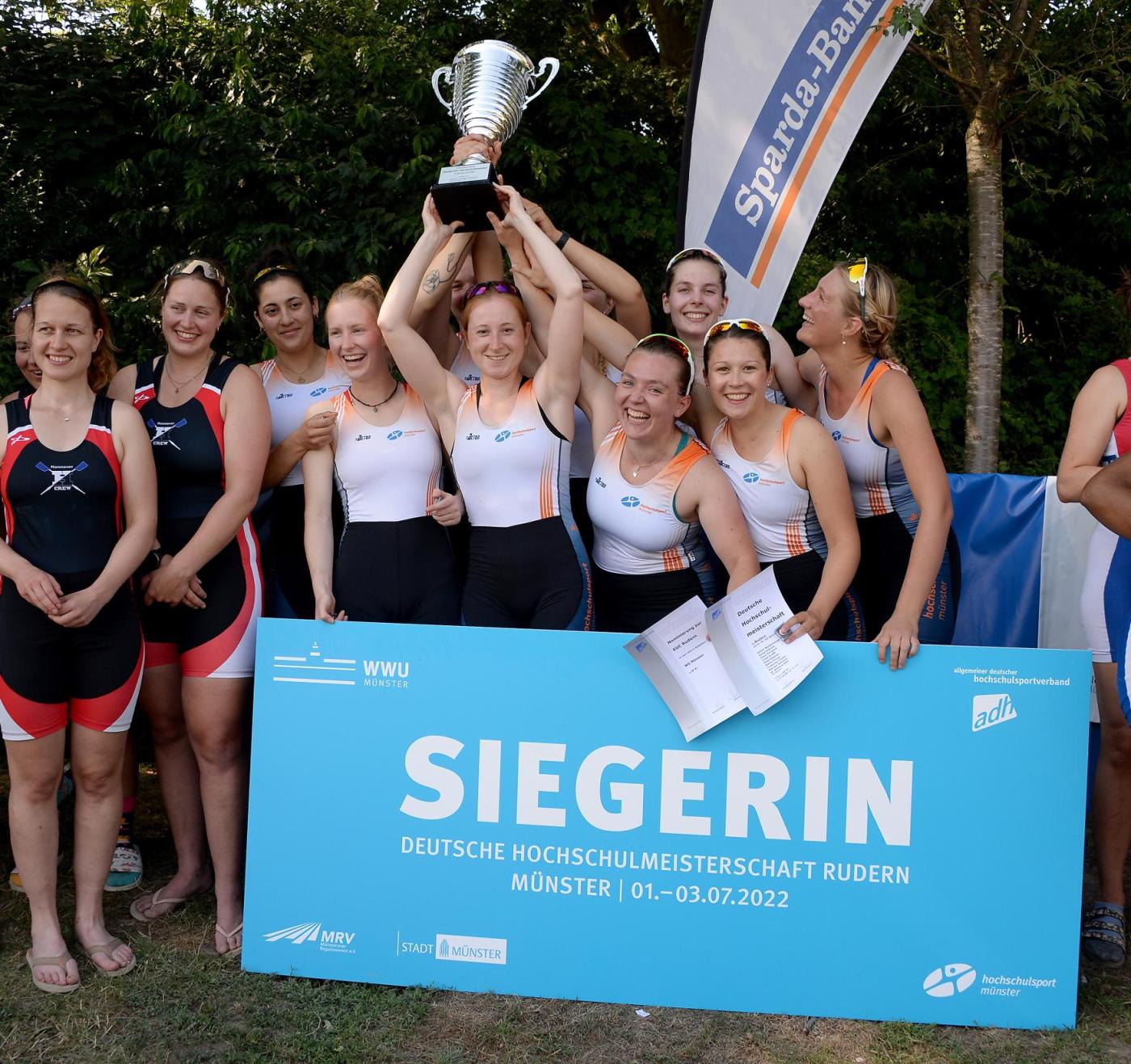 Die Vierfach-Meisterschaft wurde in diesem Jahr erneut durch die Deutsche Hochschulmeisterschaft im Rudern komplettiert. In insgesamt 25 verschiedenen Bootsklassen wurden hier die Meisterinnen und Meister gekürt. Unter anderem konnte sich in einigen Bootsklassen für die European Universities Championships (EUC) Rudern 2023 in Polen qualifiziert werden. Zu überzeugen wusste im eigenen „Wohnzimmer“ auch der Frauen-Achter aus Münster. Der aus der Ruder-Bundesliga bekannte Achter überquerte mit einem soliden fünf Sekunden Vorsprung die Ziellinie.