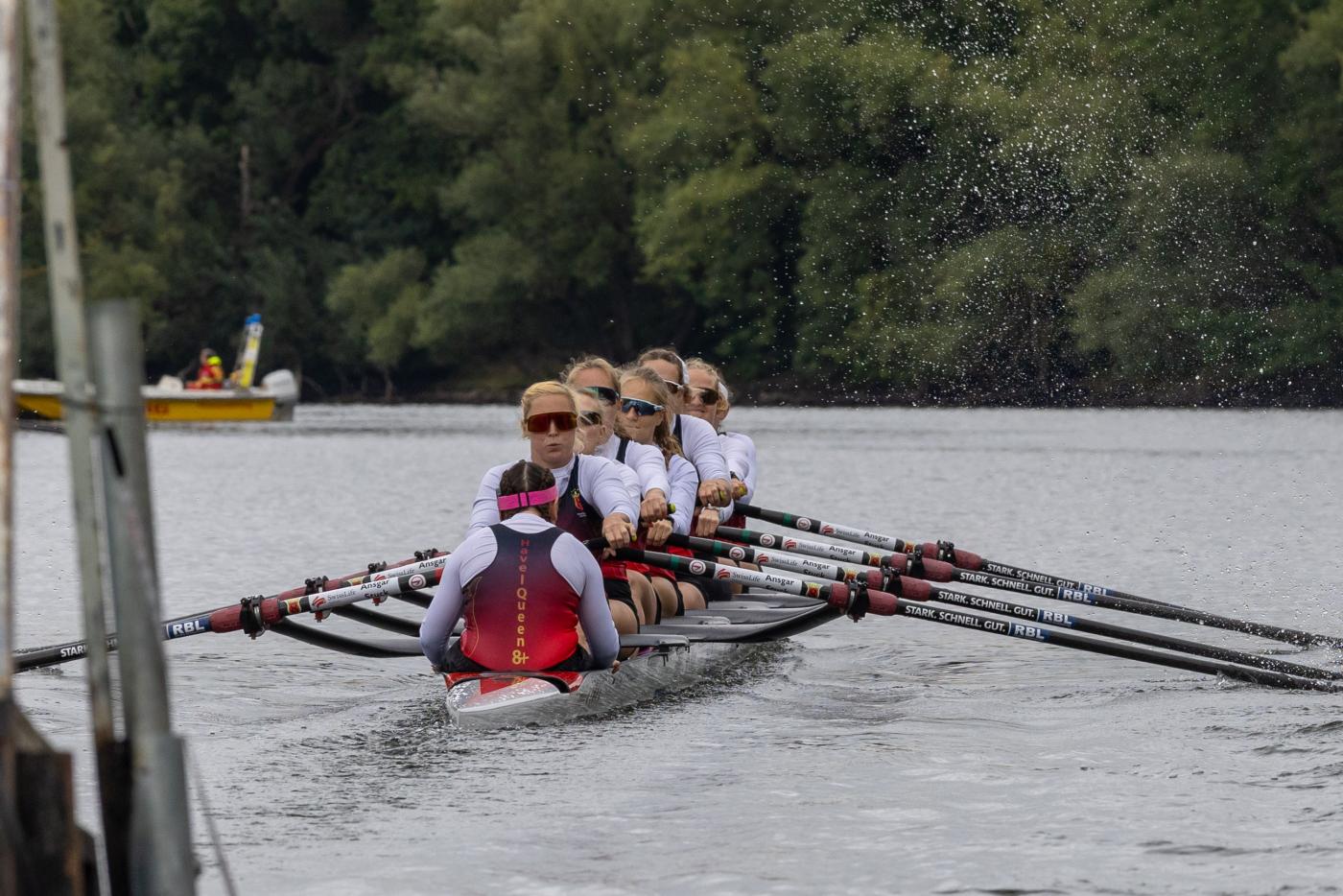 Auch bei den Frauen bleibt es spannend: Der HavelQueen-Achter liegt derzeit knapp vor den Verfolgerinnen vom Kötter-Services Ruhr-Achter Essen Kettwig und den Alstersprinterinnen aus Hamburg. Der Sieg beim Renntag in Essen kann somit schon richtungsweisend sein, es kommt auf jeden Schlag an.