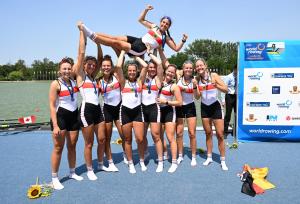 Michelle Lebahn, Chiara Saccomando, Ricarda Heuser, Antonia Galland, Emilia Fritz, Olivia Clotten, Lene Mührs, Klara Kerstan und Steuerfrau Annalena Fisch (RC Potsdam/Breisacher RV/RG München/RK am Baldeneysee/Passauer RV/Neusser RV/Kettwiger RG/RC Potsdam/RK am Wannsee) holten die vierte Medaille des Tages und einzige silberne. Trainer Karsten Timm konnte aufgrund einer Verletzung nicht mit dem Rad neben dem Rennen herfahren, hatte sich aber schon an die Situation gewöhnt: „Der Live Ticker hat - Gott sei Dank - funktioniert und da die Mädels die ganze Zeit vorne mit dabei waren, war mir dann schon 500m vor dem Ziel klar, dass sie Silber holen. Ich bin super stolz auf die Mädels und hab immer an sie geglaubt, trotz der Delle während des Hoffnungslaufs. Einfach mega“. Weltmeisterinnen wurden die Amerikanerinnen. Bronze holte sich Kanada.