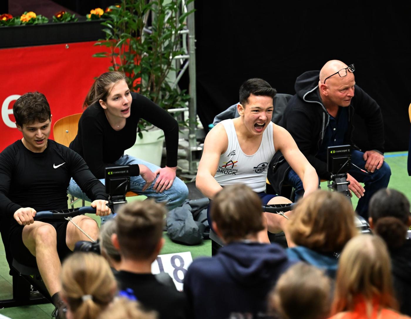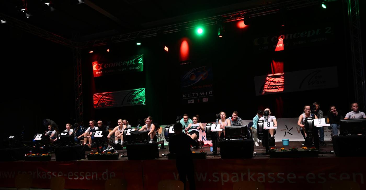 Bereits zu den Vorläufen war die Halle prall gefüllt mit Zuschauern. Somit konnte der Regattasprecher Michael Hein leicht die Stimmung anheizen, wodurch die Sportler von der Atmosphäre über die 1000m, 1500m und 2000m auf den Ergometern getragen wurden.