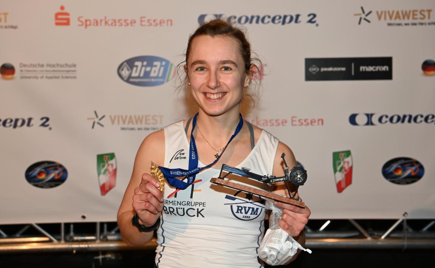 Ebenfalls konnte sich unsere Nationalkaderathletin Lene Mührs (Frauen-Achter) von der KRG in der offenen Kategorie der Frauen die Goldmedaille sichern.