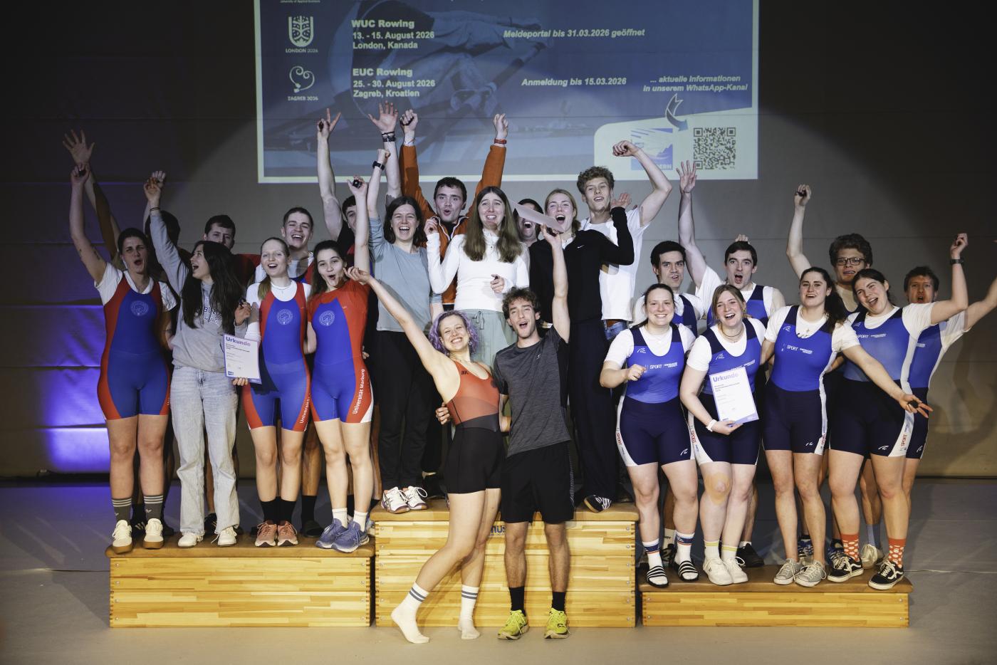 Viele enge Entscheidungen um nur wenige Zehntel belegten das hohe Niveau im deutschen Hochschulrudern. Auch die Team-Wettbewerbe am Nachmittag sorgten für Spannung und ausgelassene Stimmung in der Halle. Ein besonderes Highlight war der Staffel-Wettbewerb der „Novizen“ über 2.000 Meter, der mit fliegenden Wechseln alle 500 Meter ein besonderes Element vorsah. Gold sicherte sich dabei die WG Dresden vor der Uni Marburg und der WG Konstanz.