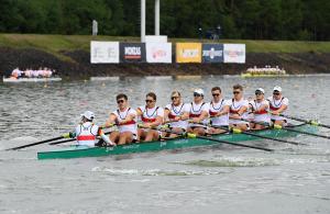 Der deutsche Männer-Achter ist bei dieser WM ein Talentschuppen, in dem nur Schlagmann Torben Johannesen über Erfahrung bei Top-Ereignissen verfügt. Es resultiert vor allem aus der an großen Erfolgen reichen Historie dieses Bootes, dass der abgeschlagene vierte Platz im Vorlauf 12,78 Sekunden hinter Überraschungssieger Kanada eine Enttäuschung war. Mark Hinrichs (Limburger Club für Wassersport), Jasper Angl (RV Neptun Konstanz), Julian Garth (Crefelder RC), Tom Tewes (Münchner RC), Benedict Eggeling (RC Favorite Hammonia), Mattes Schönherr (RC Potsdam), Wolf-Niclas Schröder (RU Arkona Berlin), Torben Johannesen (RC Favorite Hammonia) und Steuermann Jonas Wiesen (RG Trais-Karden) zahlten Lehrgeld und hatten mit dem Ausgang des Rennens ab der 1000-Meter nichts mehr zu tun. Kanada, die nur zweitplatzierten Niederlande und Australien machten den Sieg und den direkten Qualifikationsplatz für das Finale unter sich aus. Im anderen Vorlauf setzte sich Topfavorit Großbritannien knapp vor Rumänien durch, Dritter wurden die USA.