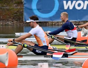 Oliver Zeidler hatte für sein Viertelfinale im Männer-Einer zwei Ziele – nur eines konnte er verwirklichen. Mit Platz zwei qualifizierte er sich problemlos für das Halbfinale, aber das angestrebte Ausrufezeichen mit dem Sieg gegen Melvin Twellaar gelang ihm nicht. Der Europameister aus den Niederlanden fuhr Zeidler (Frankfurter RG Germania) an der 1500-Meter-Marke zügig davon und gewann das Rennen. Für Olli war das kein größeres Problem: „Melvin ist stark, das hat er schon bei den Europameisterschaften gezeigt. Deshalb ist es keine Schande, gegen ihn zu verlieren. Für mich ist er der klare Favorit auf den WM-Titel.“ Dass er Twellaar bei dessen Überholmanöver nichts mehr entgegensetzte, erklärte Zeidler so: „Bei einem Viertelfinale muss man entscheiden, ob man Kräfte schont oder ‚all in‘ geht. Ich habe mich heute gegen Letzteres entschieden. In den Halbfinals gibt es harte Setzungen, das könnten bei Weltcups Finals sein. Von daher war es, glaube ich, die richtige Entscheidung, heute nicht alles zu geben.“