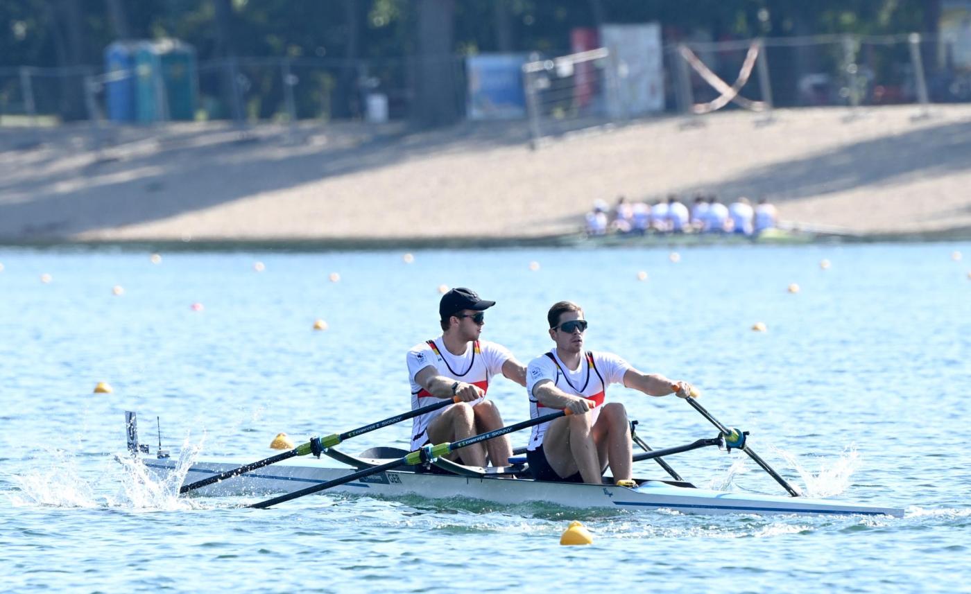Ein gutes Rennen lieferten Jonas Gelsen und Marc Weber (RC Nassovia Höchst und RuS Steinmühle Marburg) im Doppelzweier der Männer ab, auch wenn sie keine Chance darauf hatten, das Finale zu erreichen. Kroatien, Irland und auch Spanien bewegten sich in einer eigenen Liga und holten sich die drei ersten Plätze. Gelsen und Weber ließen den Rückstand jedoch nicht zu groß werden und kämpften vehement um einen guten Startplatz im B-Finale. An Norwegen zogen sie noch vorbei, Neuseeland schafften sie knapp nicht mehr. „Wir sind mit dem Rennen zufrieden, weil die Jungs zum ersten Mal auch gezeigt haben, dass sie am Ende noch Kapazitäten haben. Auf den letzten 500 Metern waren wir sogar die Schnellsten. Und das auf einer sicher nicht bevorzugten Bahn“, sagte Trainer Ralf Hollmann. „Das gibt uns Hoffnung für das B-Finale. Die Beiden sind jetzt drei gute Rennen gefahren, jetzt müssen sie es noch zu Ende bringen.“ Der fünfte Rang dort würde das Olympia-Ticket bedeuten.