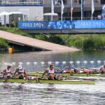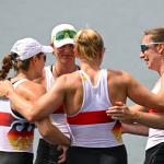 Beim Männer-Achter ist aus einer Stresssituation heraus der Knoten geplatzt. Im Hoffnungslauf zeigte das Boot das beste Rennen dieser Saison, belegte Platz zwei mit nur 1,59 Sekunden Rückstand auf die zuletzt fast immer weit enteilten Niederlande, und qualifizierte sich sehr souverän für das Finale am Samstag. Australien und Rumänien auf den Plätzen drei und vier sind ebenfalls dabei, wenn es gegen die als Vorlaufsieger direkt qualifizierten Achter aus Großbritannien und USA um die Medaillen geht. Das bittere Los, als einziges der sieben zugelassenen Großboote auszuscheiden, traf Italien, das im Hoffnungslauf nicht mithalten konnte.