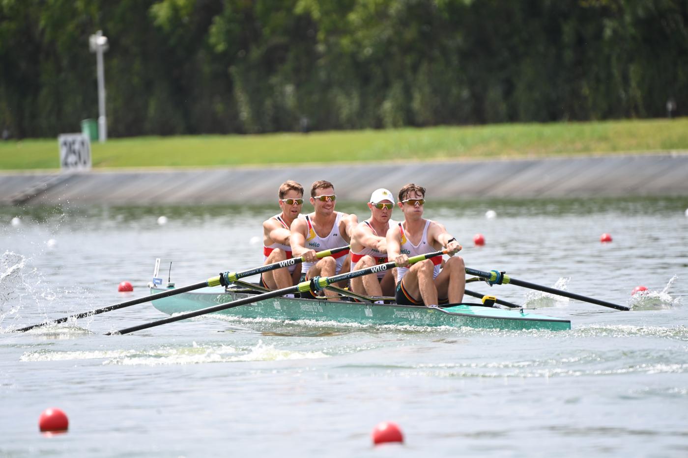 Das war bitter. Der Männer-Vierer ohne Steuermann hat das WM-Halbfinale knapp verpasst. Wolf Niclas Schröder, René Schmela, Max John und Friedrich Amelingmeyer (RU Arkona Berlin, Berliner RC, Olympischer RC Rostock und Osnabrücker RV) kämpften in ihrem Vorlauf bis zum Zielstrich, aber ihre Zeit von 6:04,26 Minuten war letztlich um 1,39 Sekunden zu langsam, um über die Zeitregel den Sprung unter die Top-Zwölf zu schaffen.