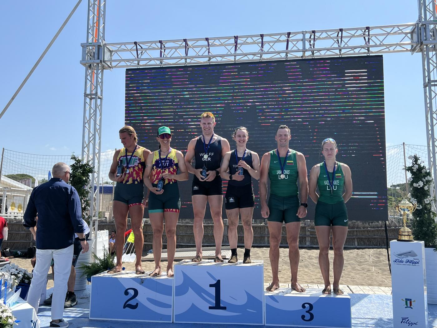 Bei der vierten und letzten Station der internationalen Filippi Lido Trophy in Marina di Castagneto (Nähe Donoratico) überzeugten die deutschen Athletinnen und Athleten in der olympischen Disziplin Coastal Beach Sprint mit starken Leistungen. Mit zwei Goldmedaillen und einer Bronzemedaille präsentierte sich das Team der Bundestrainer Adrian Bretting und Hendrik Bohnekamp in Topform. Das Event diente gleichzeitig als internationaler Leistungsvergleich auf höchstem Niveau.