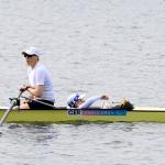 Schon vor dem Start des Zweier-Rennens gibt es die ersten Schmunzler: Die beiden deutschen Athleten, Jan Helmich (RC Hansa Dortmund) und Hermine Krumbein (RK Normannia Braunschweig), lächeln, als der Schiedsrichter wieder einmal Hermines Namen falsch aufruft. Doch sobald der Startschuss fällt, sind die beiden voll fokussiert. Der Start gelang ihnen hervorragend! Australien, Deutschland und Großbritannien setzten sich kurz vor der 500-Meter-Marke leicht ab. Die Deutschen liegen auf Platz drei, dicht hinter den führenden Booten.