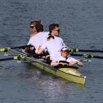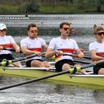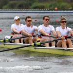 Das nächste Rennen war der Mixed-Vierer mit Steuerfrau. Susanne Lackner, Valentin Luz, Marc Lembeck, Kathrin Marchand und Steuerfrau Inga Thöne (Mannheimer RV Amicitia, Frankfurter RG Germania, beide RTHC Leverkusen und Ulmer RC Donau) lagen konzentriert am Start.