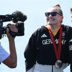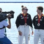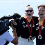 Nach dem Rennen sprachen die beiden ausgelassen über ihre Leistung. „Wir haben alles gegeben, die anderen waren am Ende besser“, erklärt Krumbein. „Natürlich fühlt sich eine Medaille mega cool an.“ Vor dem Interview fragt Helmich scherzhaft: „Passen die Haare?“ Die gute Laune bleibt, trotz der knappen Entscheidung. „Wir haben gezeigt, was wir können. Wir haben alle Körner auf dem Wasser gelassen. Dass es am Ende nur Bronze gewesen ist, war wirklich eine Millimeter-Sache, aber nichts, worüber wir traurig sein müssen,“ fügt er hinzu.