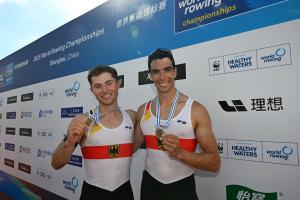 Eigentlich wollten Joachim Agne und Paul Maissenhälter im Finale des Leichtgewichts-Doppelzweiers der Männer angreifen, aber am Ende war das Ergebnis der vier Boote deckungsgleich mit dem des Bahnverteilungsrennens wenige Tage zuvor. China wurde überlegen Weltmeister (6:44,90 Minuten), Indonesien holte sich den Silber-Rang (6:47,40), und für das deutsche Boot sprang Bronze heraus (6:50,24). Georgien konnte nicht mithalten. „Nach dem etwas schwächeren Rennen zu Beginn der WM hat sich der Doppelzweier heute deutlich verbessert. Mit etwas höherer Schlagzahl sind sie näher an den führenden Booten dran gewesen. Auf den letzten Metern sind sie nochmal an die zweitplatzierten Indonesier rangefahren. Wir sind mit dem Rennen zufrieden“, sagte Trainer Andreas Holz.