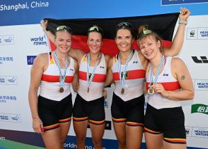 Zwei Bronze-Medaillen brachte dem Deutschen Ruderverband der erste Finaltag bei den Weltmeisterschaften in Shanghai. Sarah Wibberenz, Frauke Hundeling, Lisa Gutfleisch und Pia Greiten wurden Dritte mit dem Frauen-Doppelvierer und holten damit das erste Edelmetall im olympischen Bereich. Bronze ging auch an den Leichtgewichts-Doppelzweier der Männer mit Joachim Agne und Paul Maissenhälter. Der Männer-Doppelvierter wurde im Finale Fünfter. Emotionen unterschiedlichster Art produzierten die Ergebnisse der Achter-Vorläufe. Die Frauen ruderten erstmals seit 2009 wieder in ein WM-Finale, die Männer schieden unerwartet aus und bestreiten nur das B-Finale.