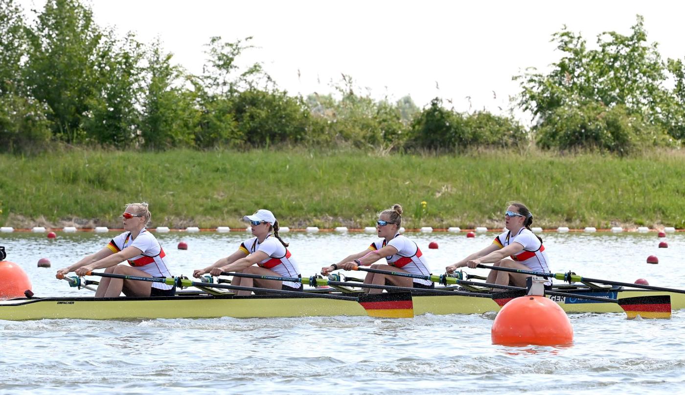 Der Frauen-Doppelvierer ließ in seinem Hoffnungslauf nichts anbrennen. Maren Völz, Lisa Gutfleisch, Leonie Menzel und Pia Greiten, (RC Potsdam, Heidelberger RK, RC Germania Düsseldorf, Osnabrücker RV) übernahmen von Beginn an die Führung und hielten den Vierer aus der Schweiz, den sie bereits beim Weltcup in Varese hinter sich gelassen hatten, sicher auf Distanz. Diese beiden Boote qualifizierten sich für das A-Finale am Samstag (14.25 Uhr), das zu einer echten Standortbestimmung für das deutsche Boot wird. Weltmeister Großbritannien ist der große Favorit, dahinter aber scheint für die DRV-Crew auch ohne die in Rekonvaleszenz zu Hause gebliebene Tabea Schendekehl alles möglich zu sein.