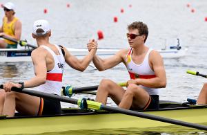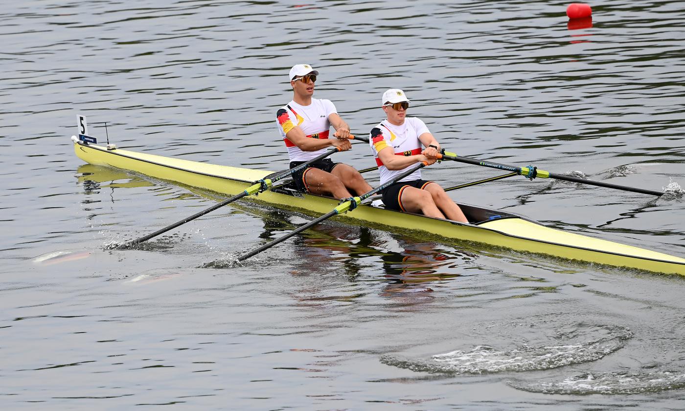 Wenige Minuten später, um 10:59 Uhr, greifen auch Naveen Shah (Ruderverein Kurhessen-Cassel) und Maximilian Rühling (Mainzer Ruder-Verein) im Leichtgewichts-Männer-Doppelzweier ins Renngeschehen ein. Gegen Polen und die USA kämpfen sie um den direkten Finaleinzug, der nur über einen der ersten beiden Plätze im Vorlauf zu erreichen ist. Auch hier kann man über die Zeit auch das Finale erreichen.